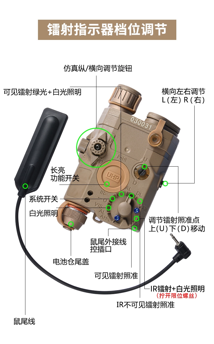 Interruptor táctico: luz LED/IR/láser verde