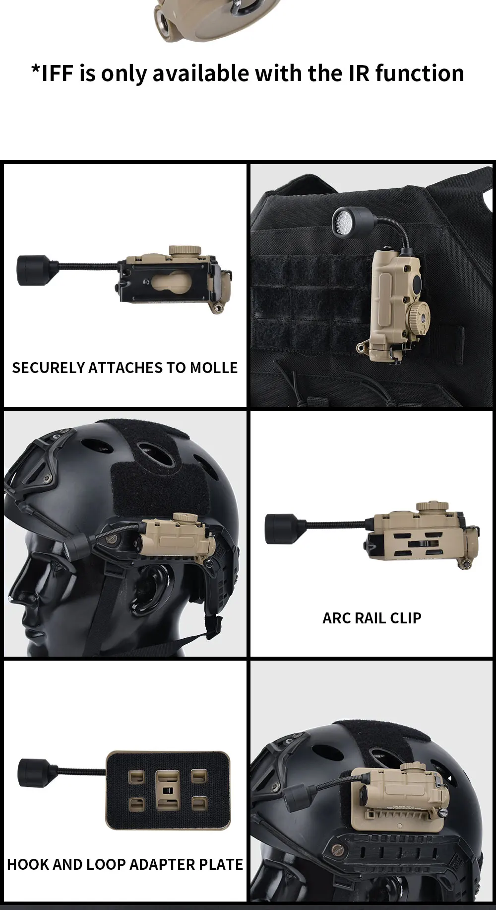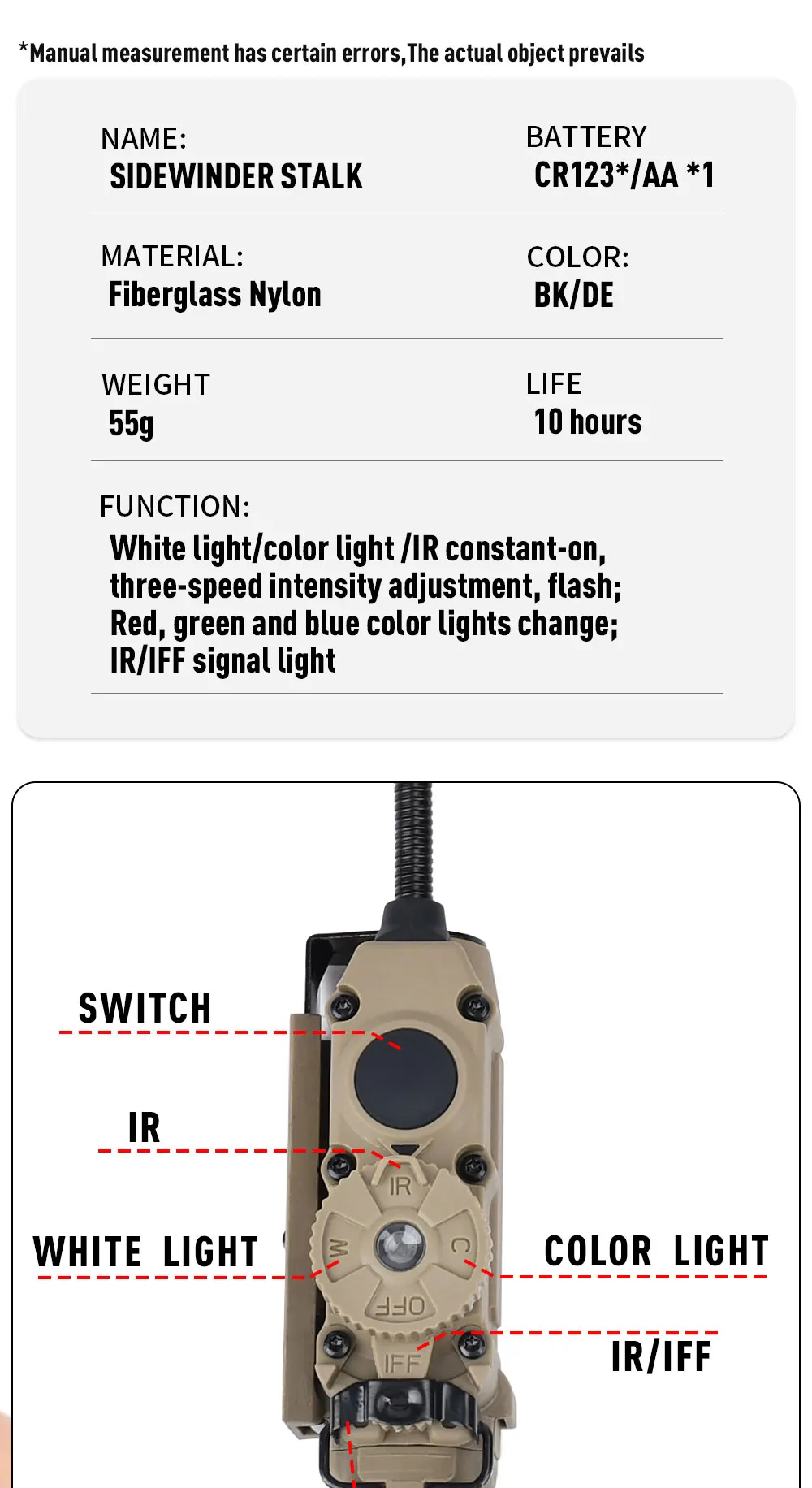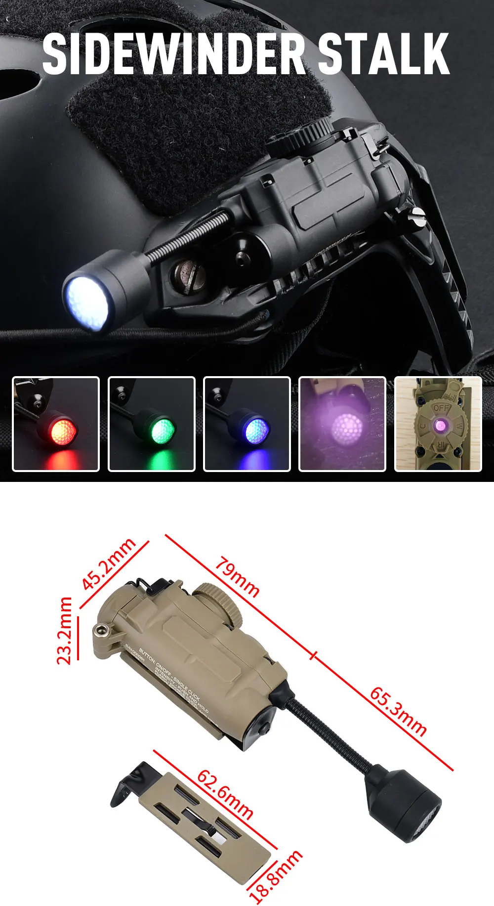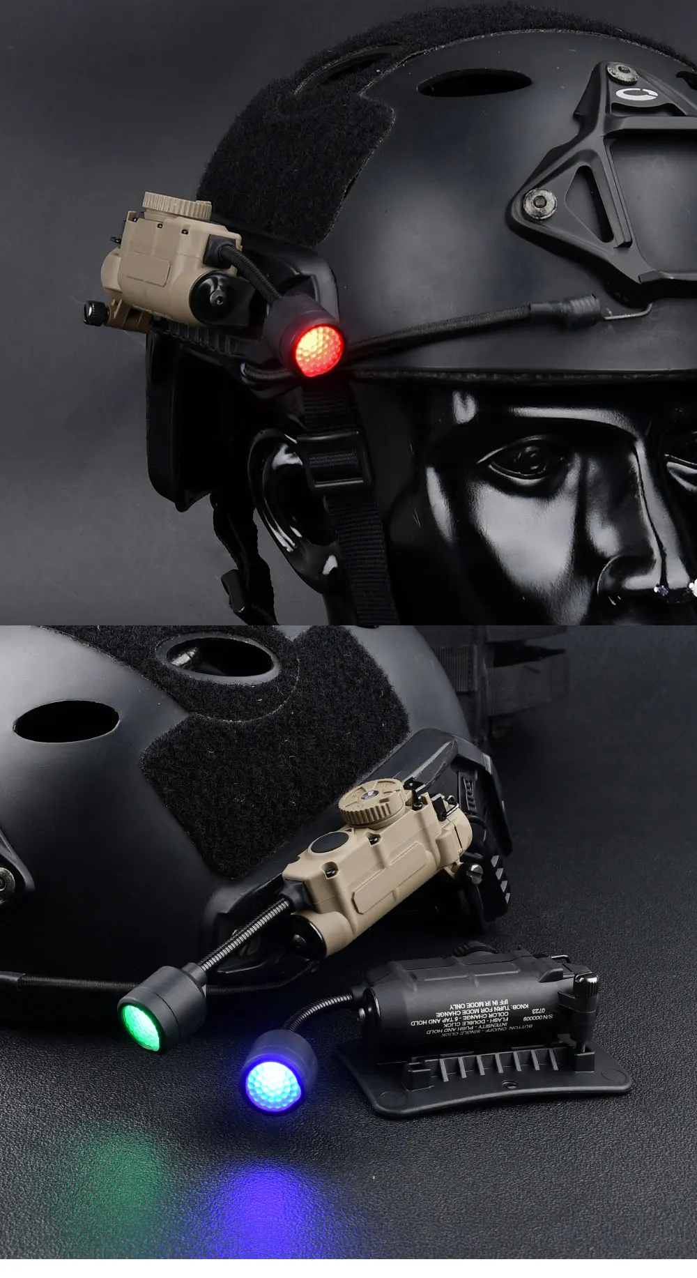 Lámpara de cabeza Sidewinder casco táctico luz estroboscópica rojo verde azul blanco luz IR LED estroboscópica IFF iluminación auxiliar de caza al aire libre