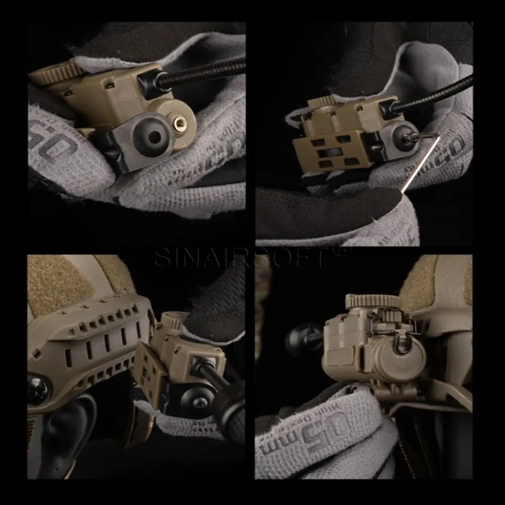 3 métodos de fijación:①Adaptarse al riel ARC de casco rápido;②Adaptarse al cierre mágico del casco táctico;③Copa de fijación.