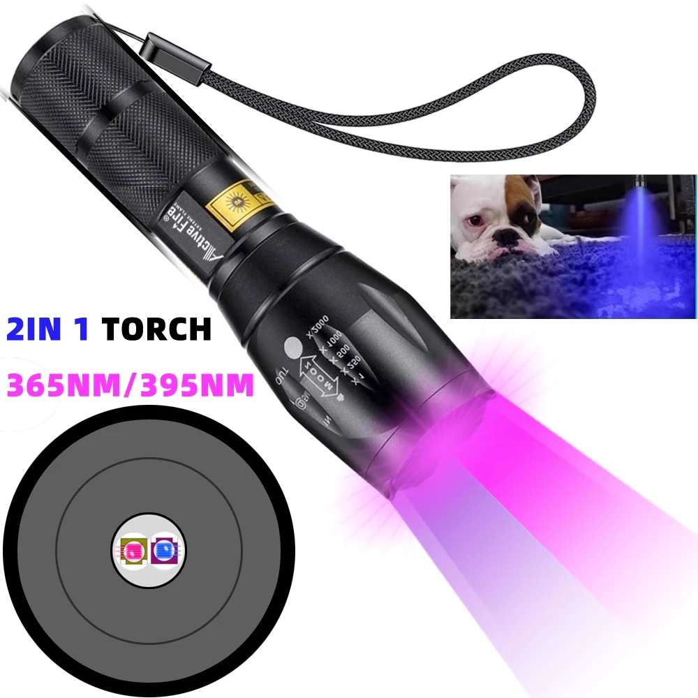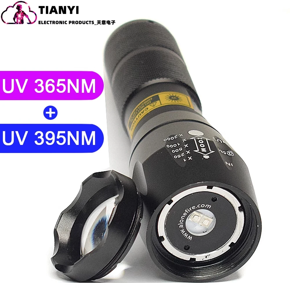 La diferencia entre 365 y 395: detector de billetes de alta potencia, UV 365+395 nm, luz violeta Tsinghua, lámpara fluorescente, linterna de luz fuerte de escorpión