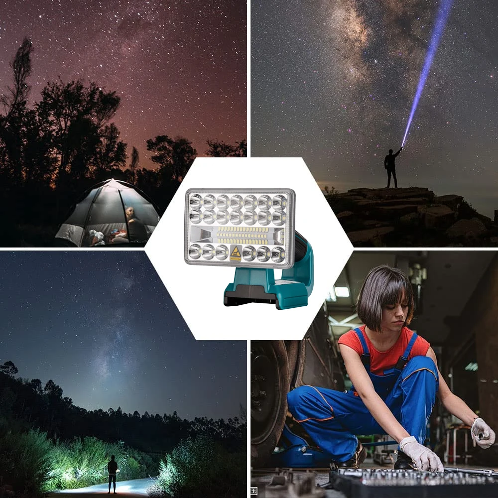 7.La gran superficie reflectante y el amplio rango de iluminación, utilizados en interiores o exteriores, pueden iluminar una gran área de trabajo y también pueden usarse como luz de emergencia para prepararse para emergencias.