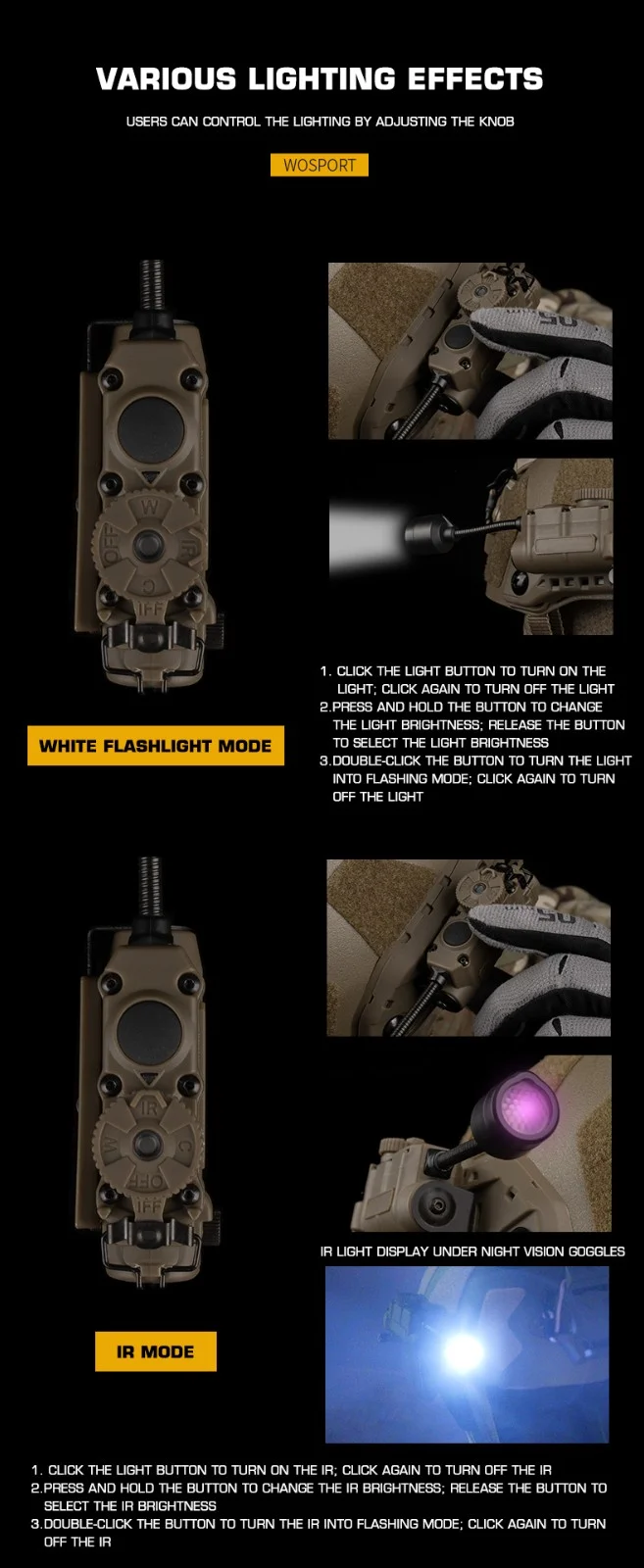 Lámpara lateral para casco, luz estroboscópica táctica, roja/verde/azul/blanca/cabeza IR, luz IFF para caza, pesca, linterna LED auxiliar