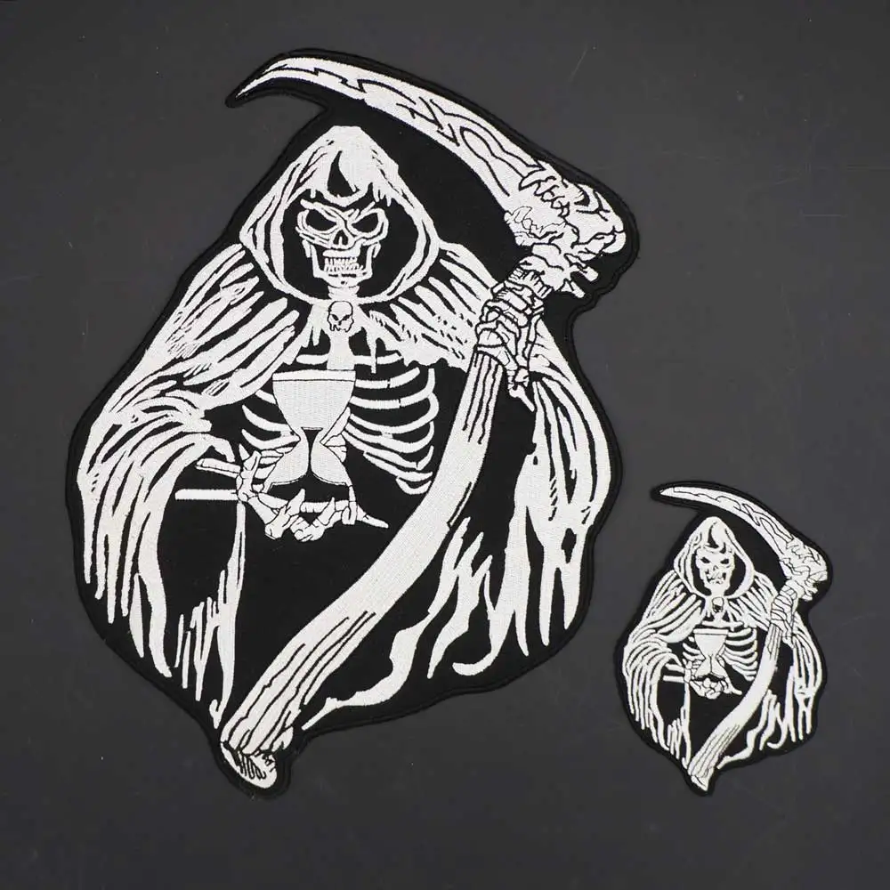 Large Sickle Grim Reaper Embroidery Punk Skull Patches Clothes Stickers Apparel Accessories Badge