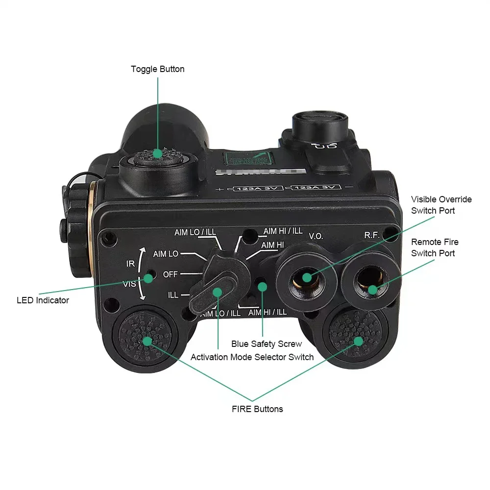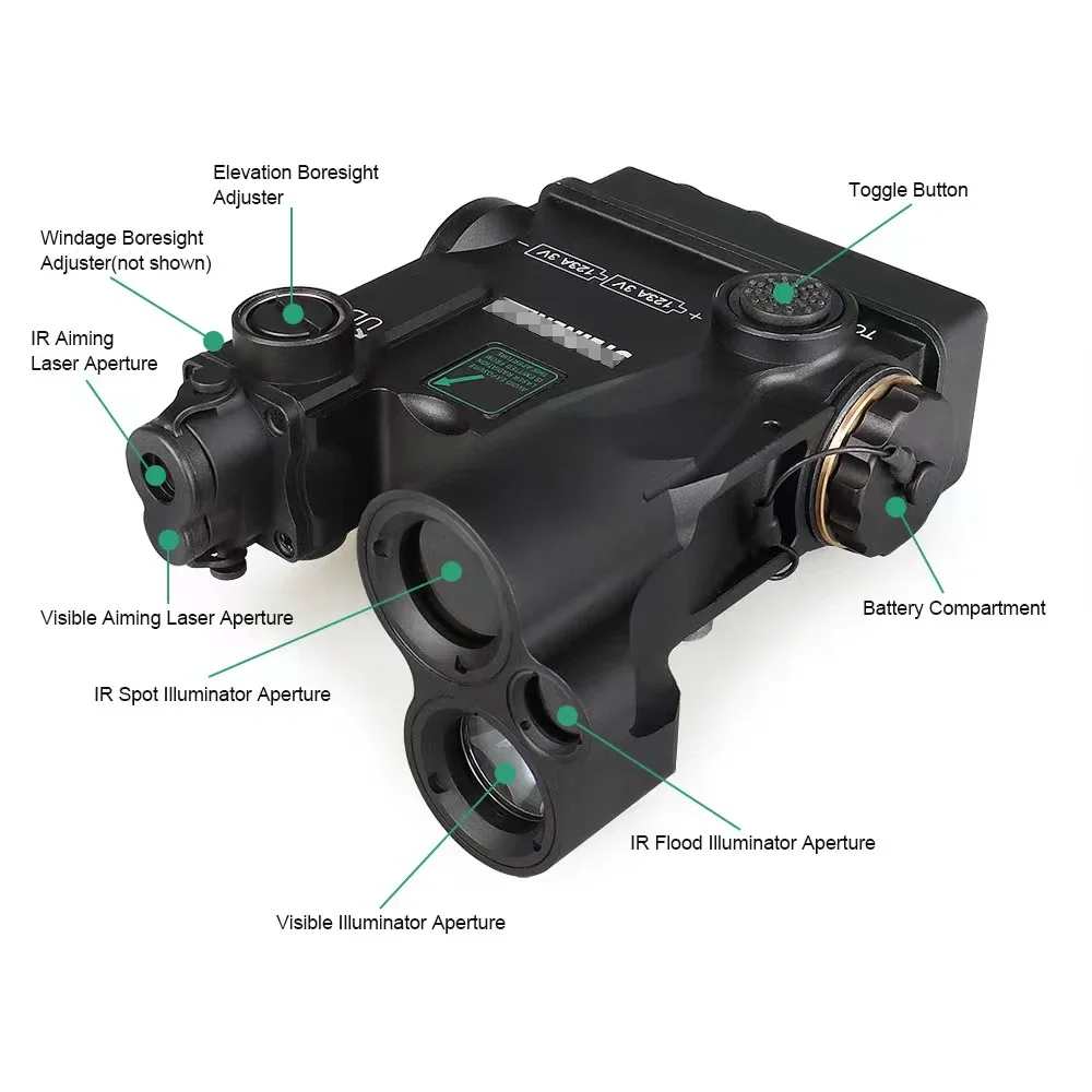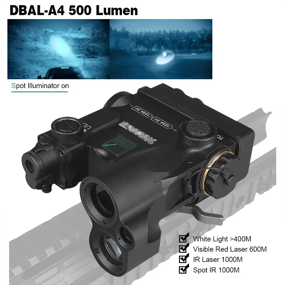 Láser de doble haz con puntería, láser táctico Dbal A4 con punto de láser infrarrojo/iluminador de inundación/luz táctica/láser verde