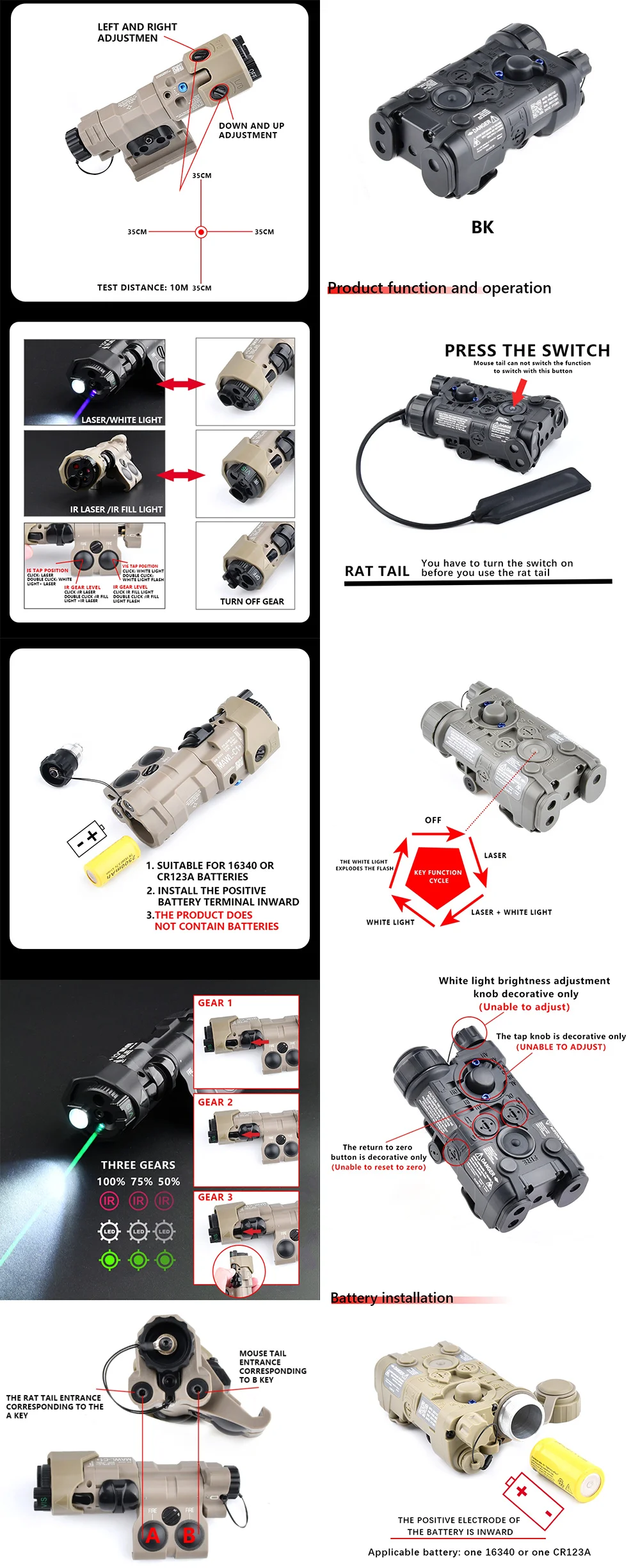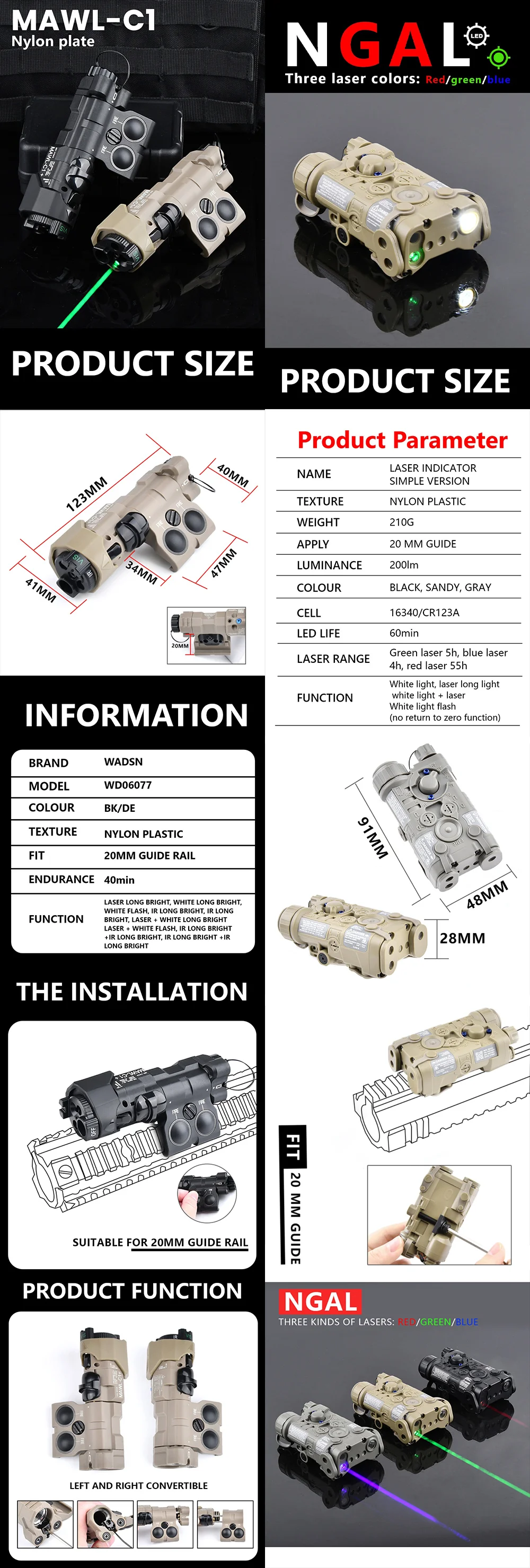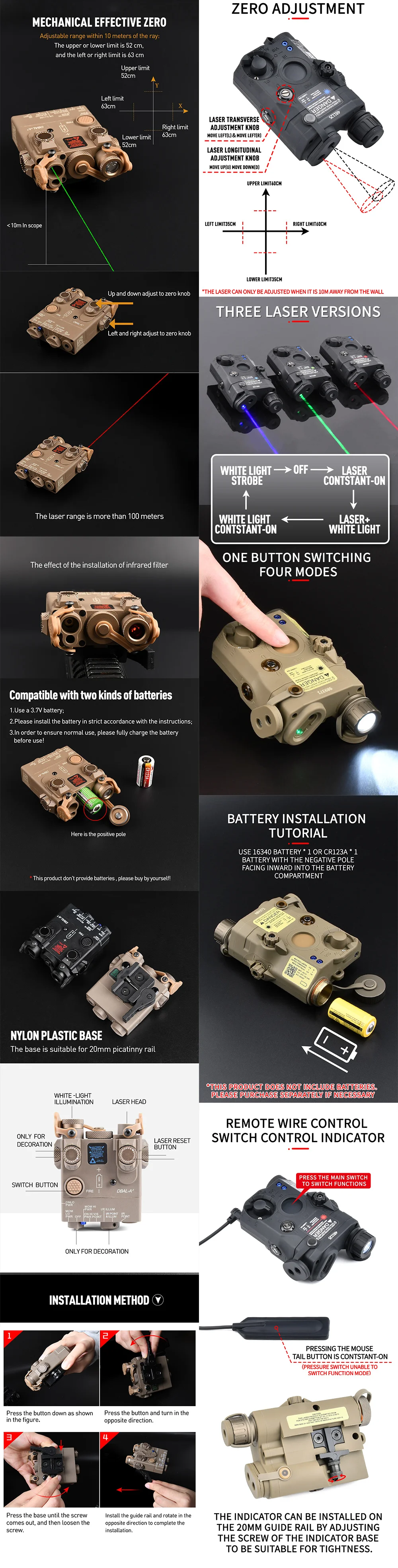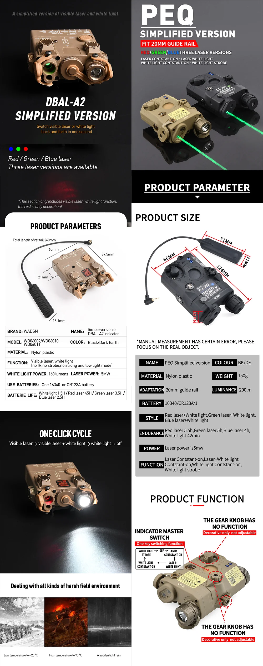 Láser táctico de nailon, DBAL-A2 de plástico, PEQ-15, punto rojo, verde, azul, Indicador de ajuste de 20MM, Airsoft, luz de caza al aire libre
