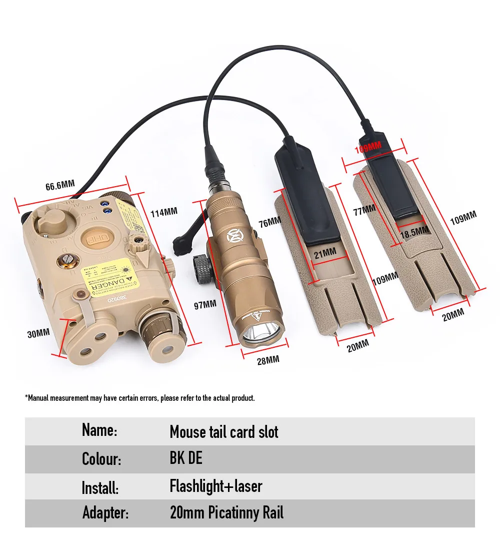 Láser táctico PEQ, luz IR roja, verde, azul, M600, M600DF, linterna de 1400 lúmenes, luz blanca con ranura para tarjeta trasera, ajuste de riel de 20mm