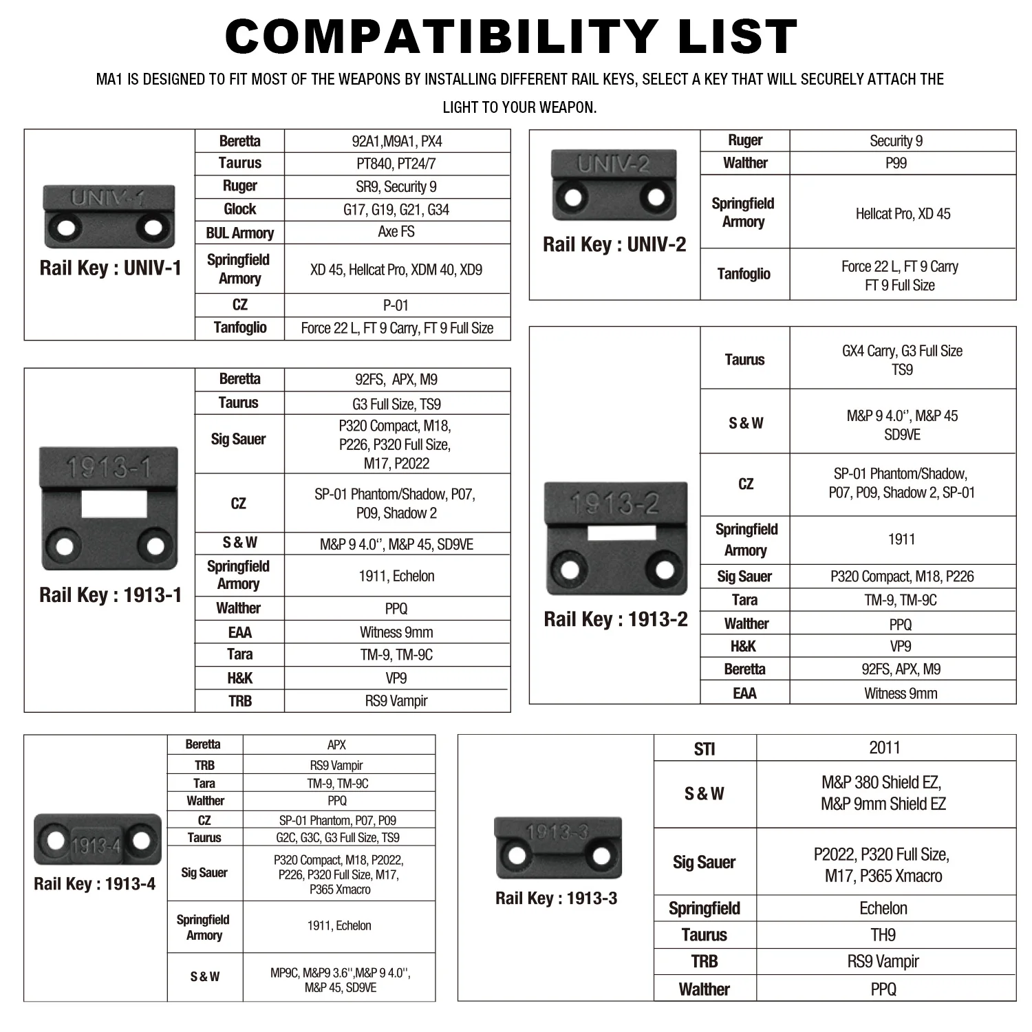 Compatibilidad universal: esta linterna de pistola es compatible con la mayoría de pistolas universales equipadas con rieles.Viene con 6 llaves diferentes para riel, que se pueden conectar fácilmente a diferentes pistolas.
