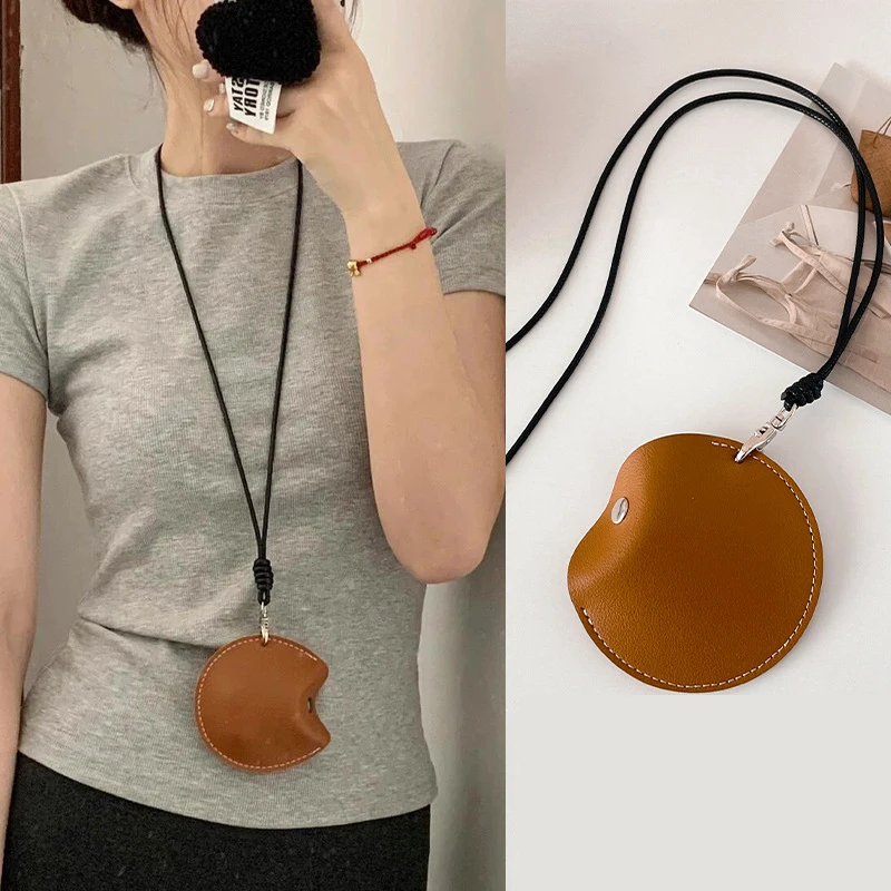 Lawaia-Bolsa de almacenamiento para auriculares con Bluetooth, colgador para colgar en el cuello, bolsa pequeña de PU, monedero redondo, bolsas de almacenamiento de artículos pequeños