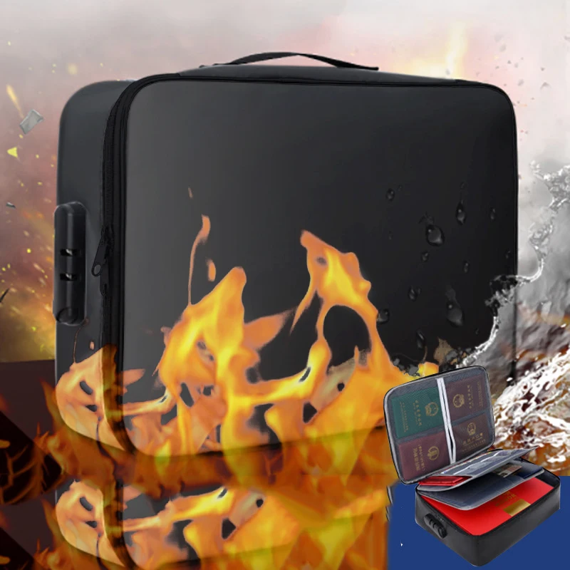 Bolsa para documentos ignífuga Lawaia con maletín con cerradura, bolsa resistente al fuego, bolsa para archivos ignífuga, almacenamiento de documentos impermeable