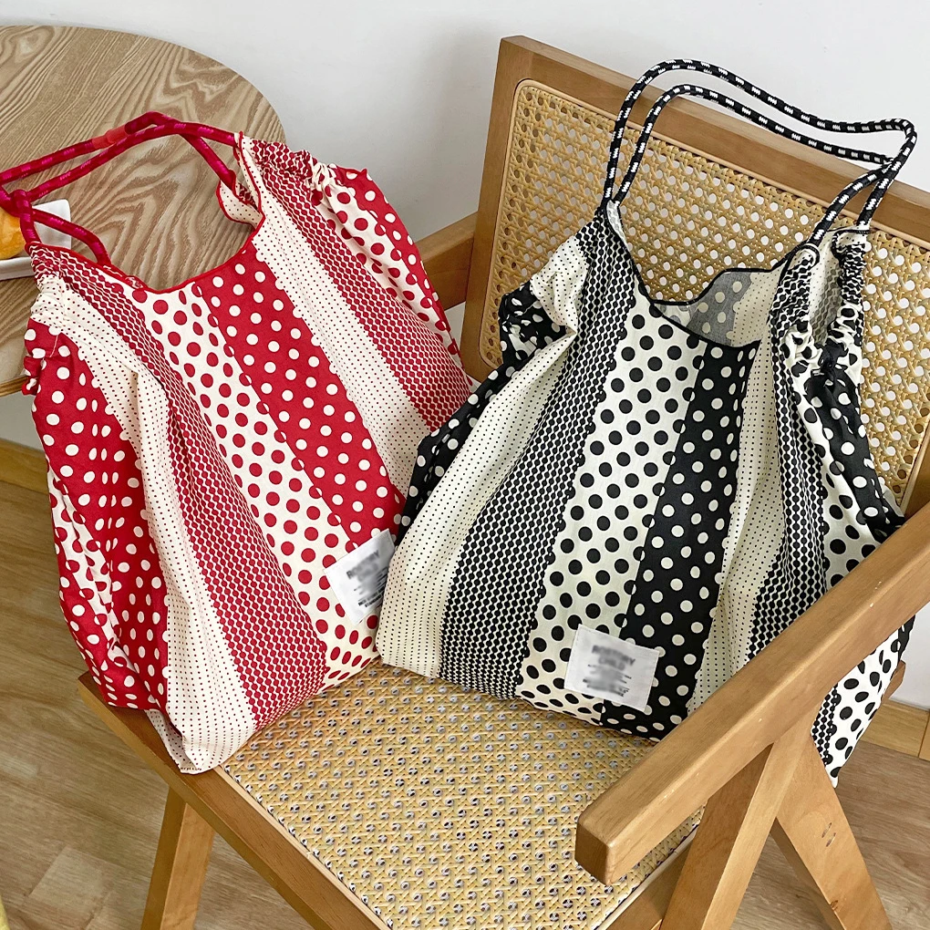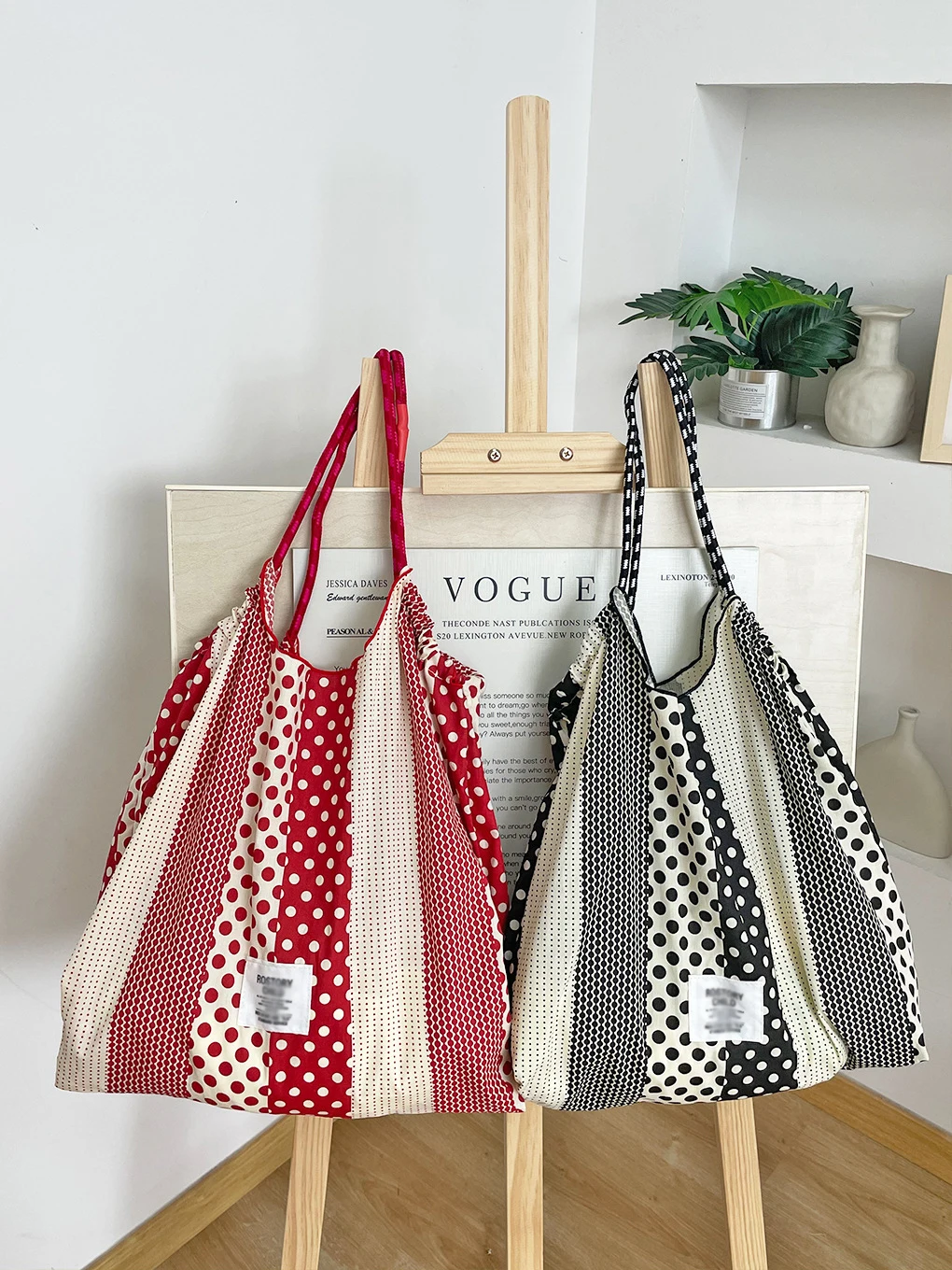 Lawaia-Bolso de algodón con cordón para fiesta, bolsa de almuerzo con lunares, color rojo, negro y blanco, 50-40cm