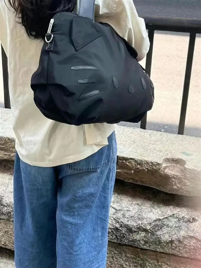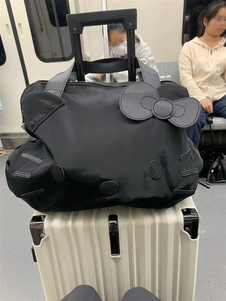 Bolso grande Lawaia que se adhiere al asa de equipaje 45cm Kitty Casual Crossbody Sling Bags para mujeres Trendy Black Bao