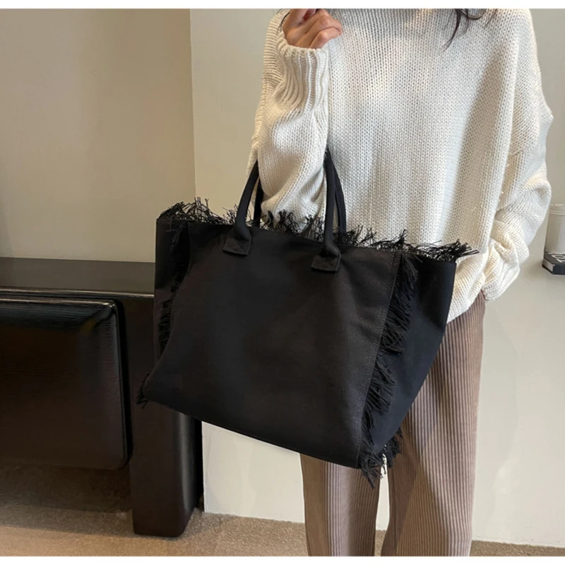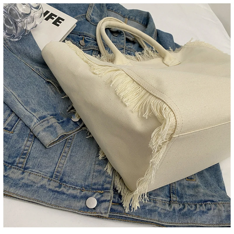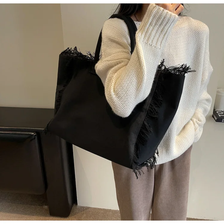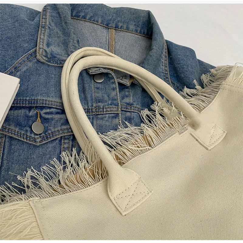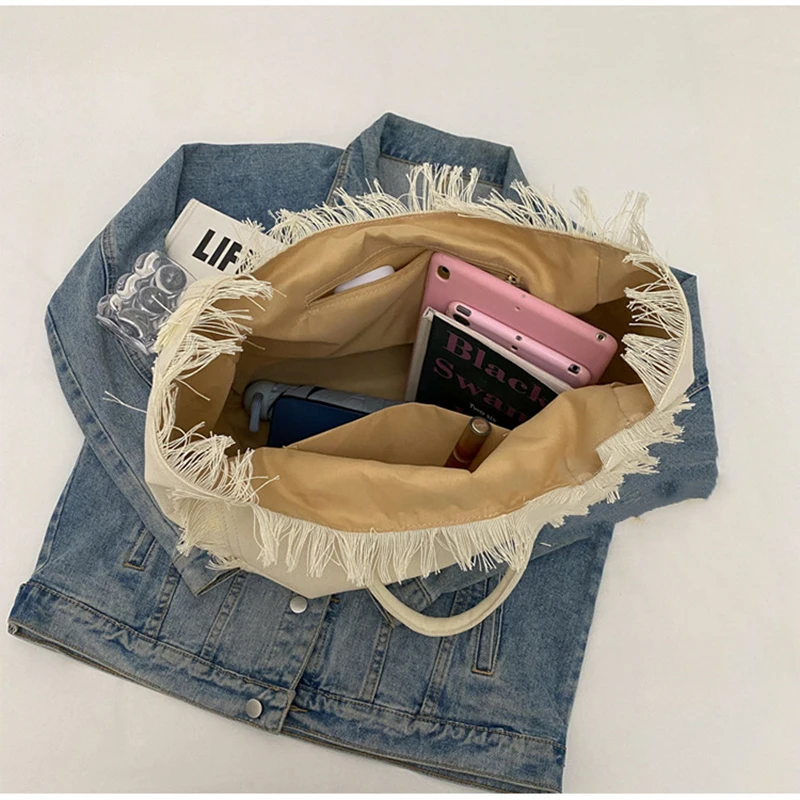 Lawaia, bolsos de mano para mujer, borlas, lona ligera, 1 pieza, 50-30cm, bolso de mano de tamaño mediano, bolso malo para liquidación escolar