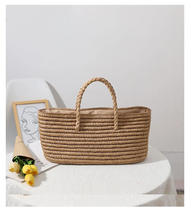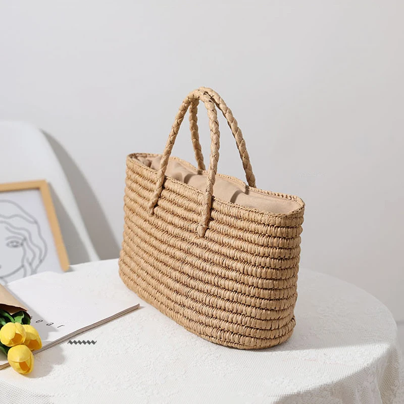 Lawaia-Bolso de mano de playa tejido bohemio, bolsos artesanales para mujer, bolso de verano de 40-20-10cm, cuerda de dibujo de ratán Natural, accesorios bohemios