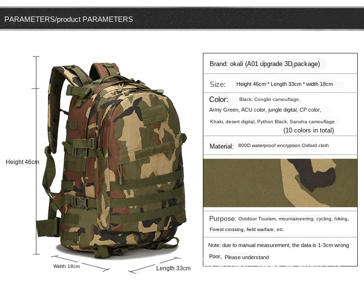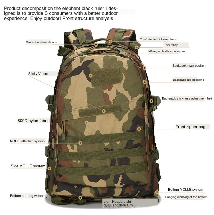 Lawaia-mochila táctica 3D para exteriores, bolsa de camuflaje multifuncional de 45L para viaje y acampada