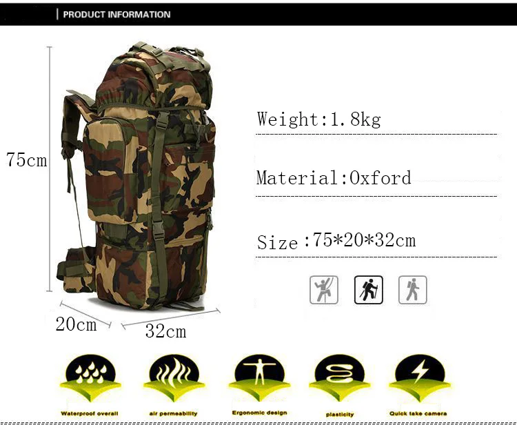 Lawaia-mochila táctica Molle de 65L para exteriores, bolsa deportiva impermeable para acampar, senderismo, caza y Trekking