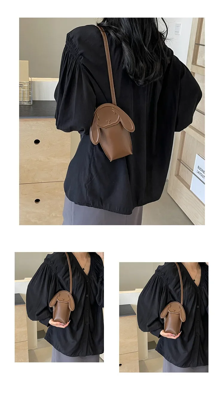 Lawaia PU lindo conejito monedero Mini conejo 1 pieza bolso terminado bolsas de teléfono con correa bolso cruzado para mujer 19-11cm