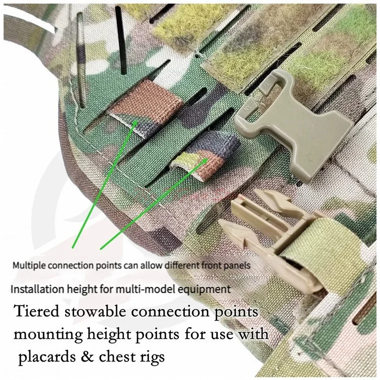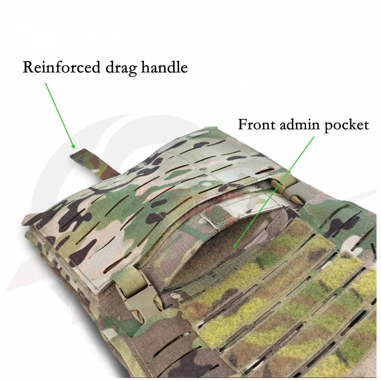 Materiales y características actualizados, tejido 500D cortado con láser, combinado con panel MOLLE cortado con láser.