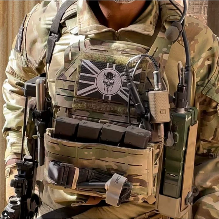 El panel frontal es modular y se puede utilizar con el panel frontal y el equipo de pecho de la mayoría de las marcas tácticas.