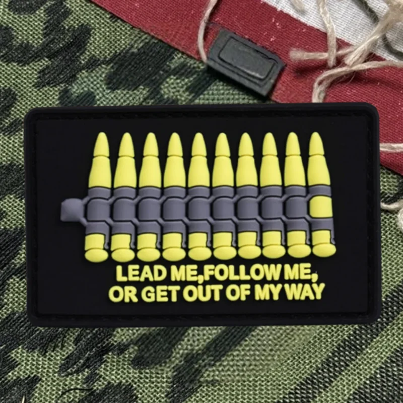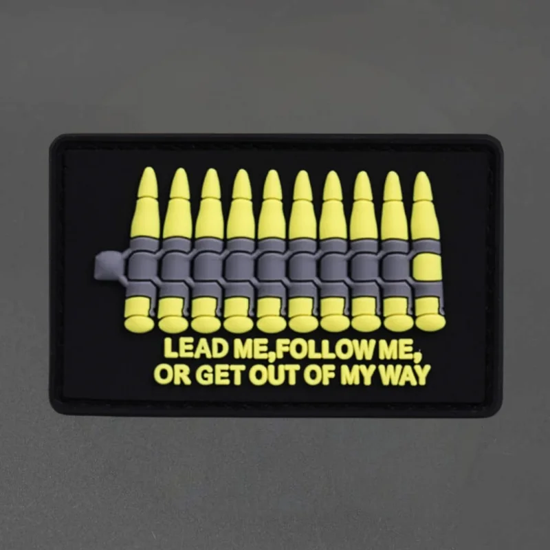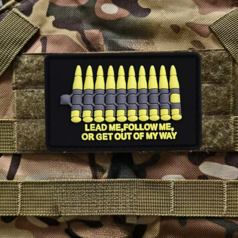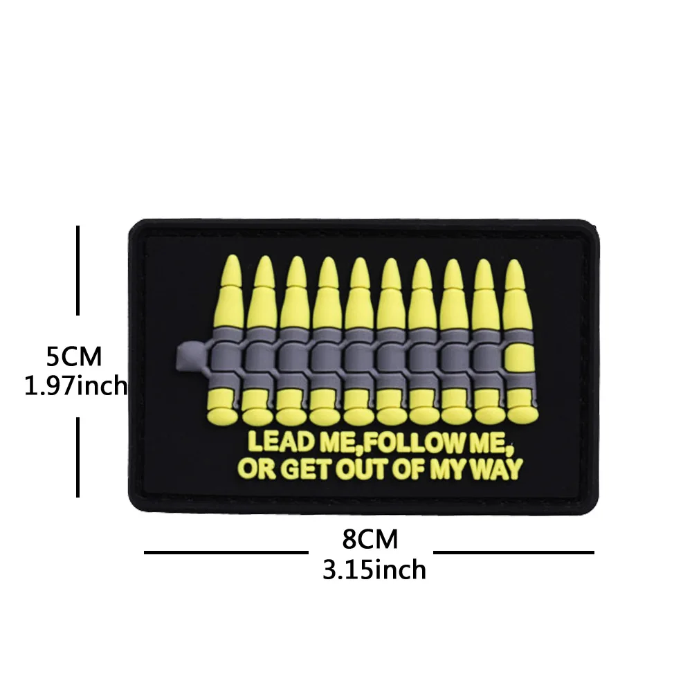 LLAMOS, SIGA ME O OBTENER DE MI VÍA Parche de PVC Chaleco táctico Insignia de gancho y bucle Adhesivos para mochila Parches para brazalete para ropa