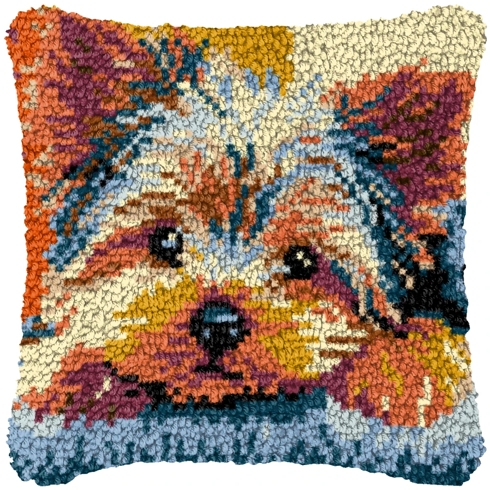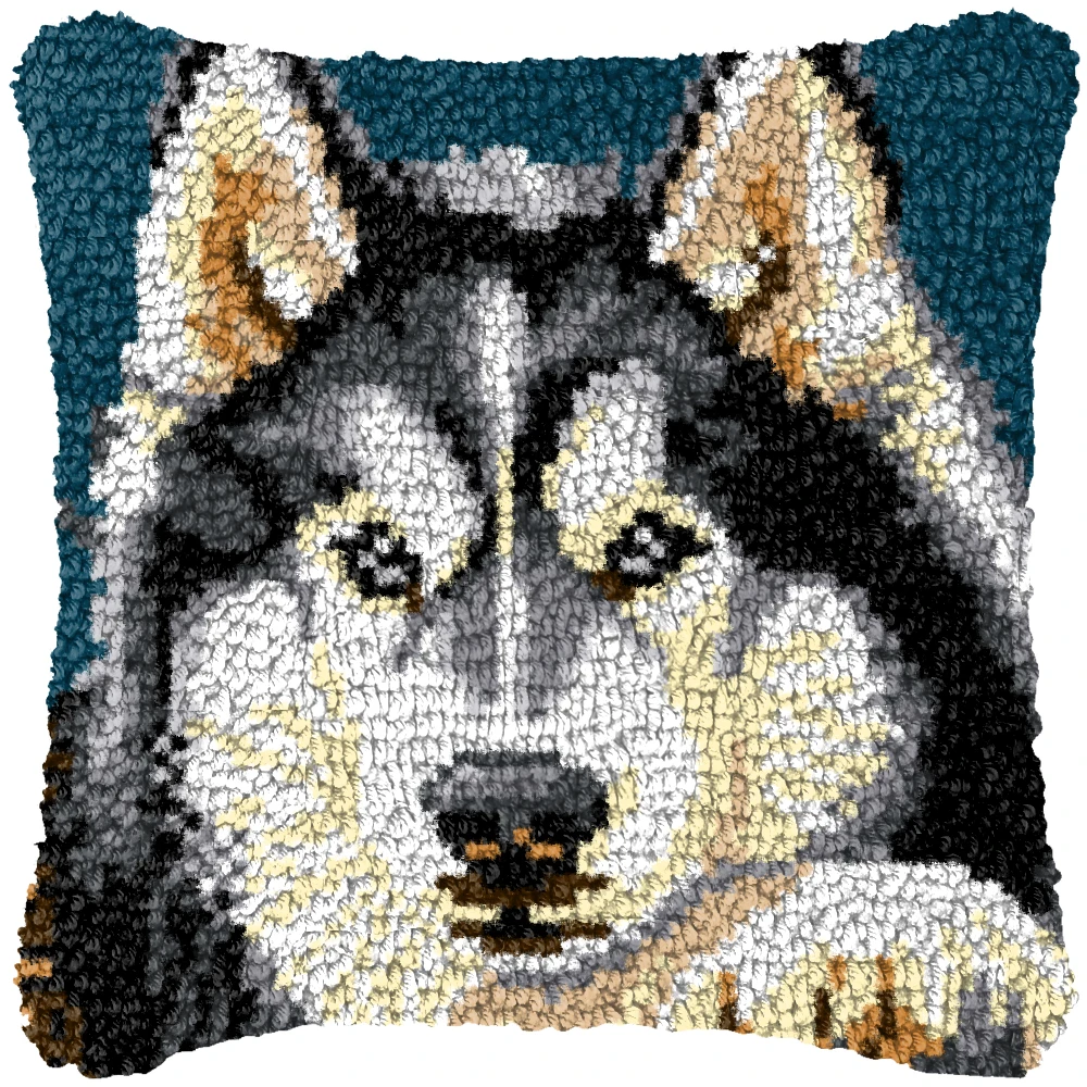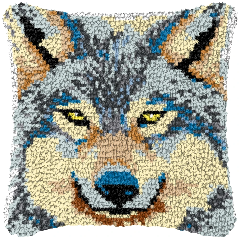 Lion Tiger Wolf Animal Latch Hook Cushion Pillowcase Crocheting Carpet Embroidery Pillow Latch Hook Kit Knitted Knot Carpet DIY