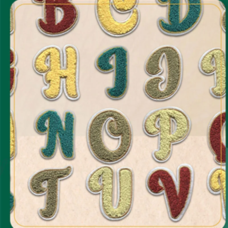 Letras bordadas de toalla verde, pegatinas de nombre para planchar, parches del alfabeto, bolsas de ropa para niños, accesorio de aplique de insignia de nombre Diy