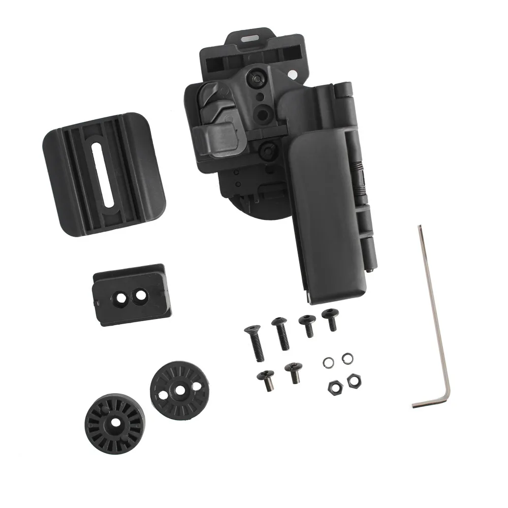 Construcción de polímero moldeado por inyección resistente Peso ultraligero y cómodo de usar Sistema de retención activa de bloqueo La ranura de la guía de la mira frontal y los imanes ayudan a reindexar el deslizamiento para una recubrimiento rápido El diseño con resorte permite que la funda se abra rápidamente una vez que se apague el bloqueo de retención para un acceso rápido Diseñado exclusivamente para permitir una manipulación rápida con una sola mano para darle una ronda;ideal para agencias que requieren condición 3 transporte Transporte seguro en condiciones 3 sin sacrificar una presentación rápida de su arma El sistema de presilla para cinturón ajustable se adapta a cinturones de varios tamaños Ángulo de inclinación ajustable Altura de la funda ajustable