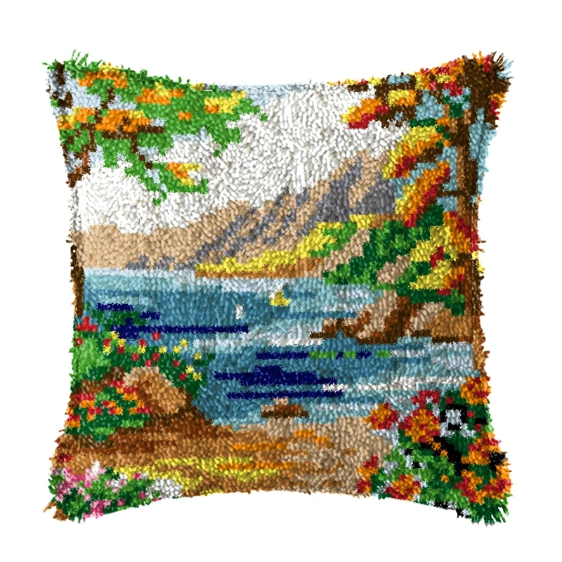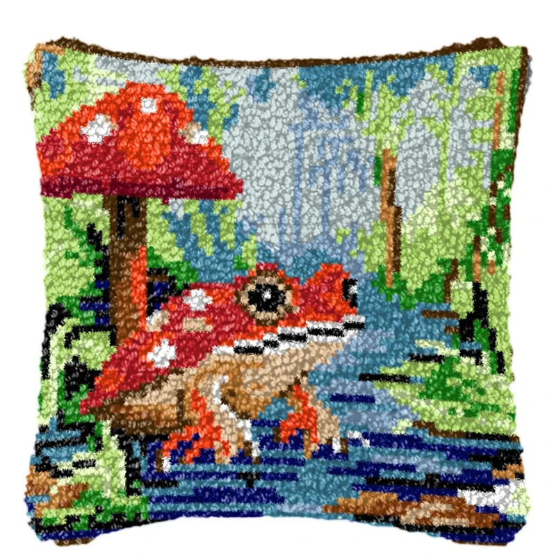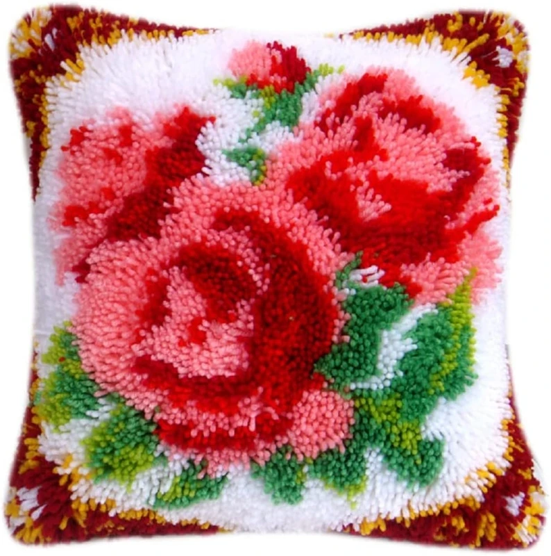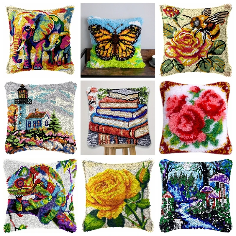 Kit de almohada con gancho para pestillo de lagarto, punto de cruz de seta, botones de Smyrna, paquete de cojín con nudo de castillo, conjunto de bordado de artes con aguja