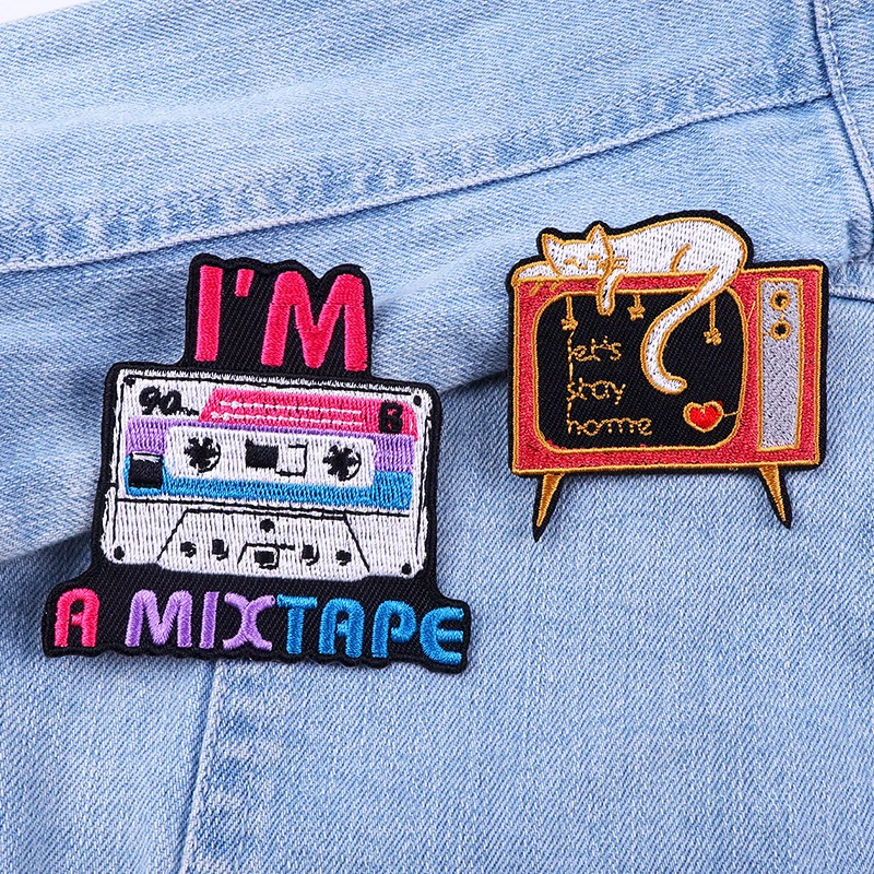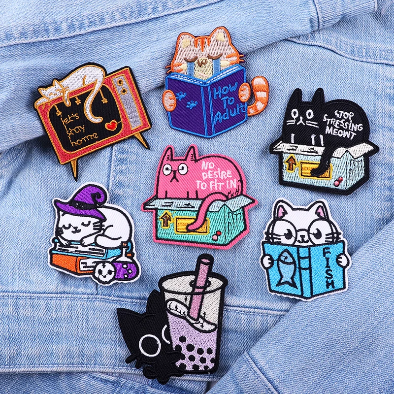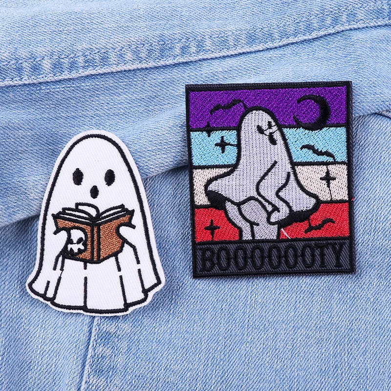 Reading Book Cat/Ghost Patch Funny Cartoon Animal Embroidery Patch Iron On Patches For Clothing Frog Patches On Clothes Jean DIY