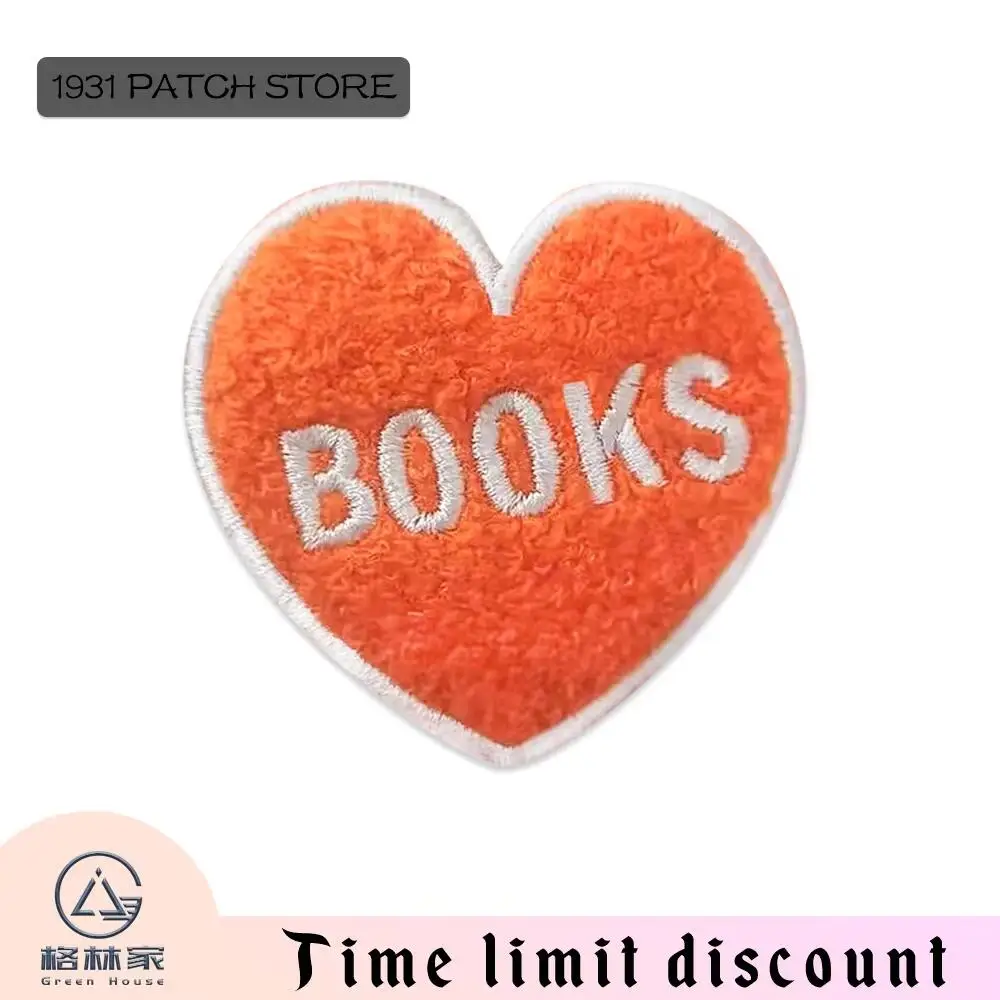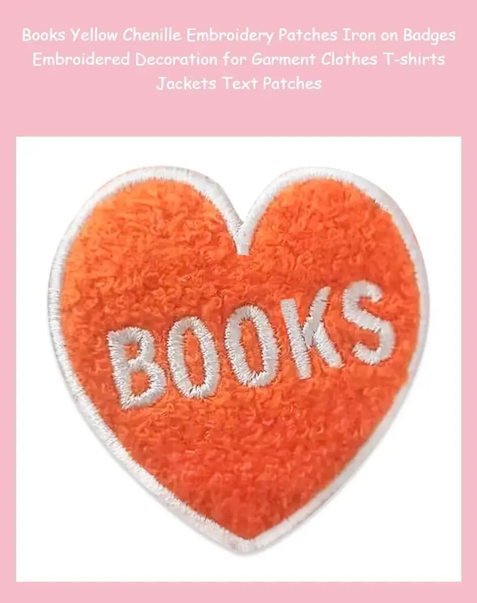 Libros Parches bordados de chenilla amarilla, insignias para planchar, decoración bordada para prendas, camisetas, chaquetas, parches de texto