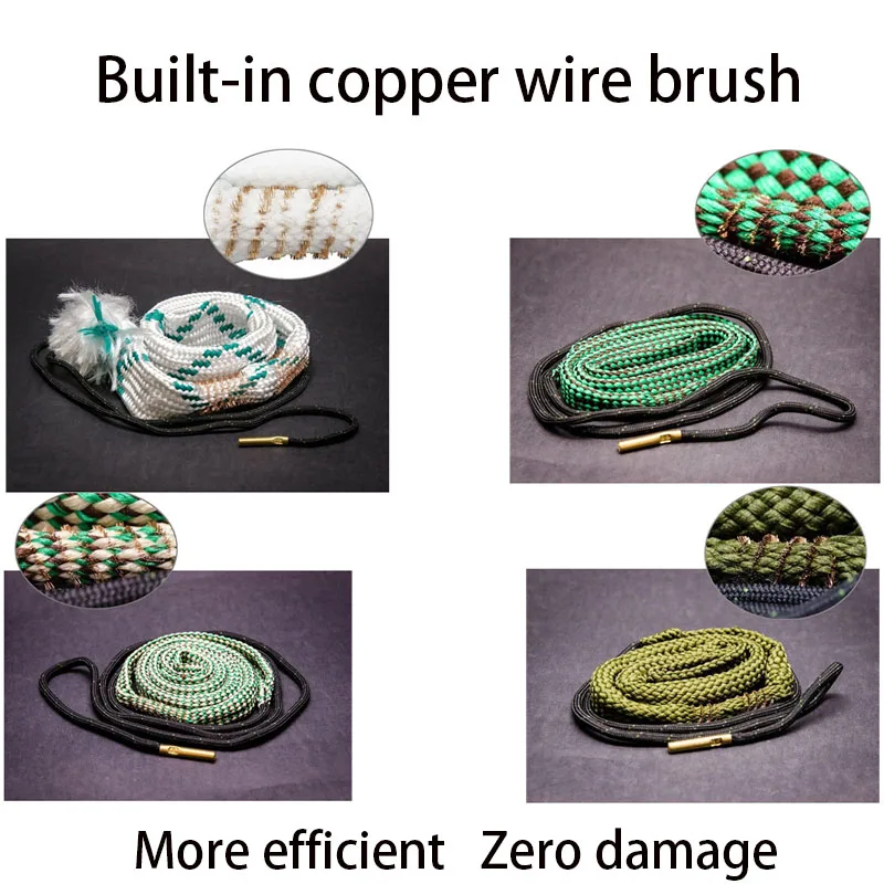 KIT DE LIMPIEZA DE GOLA para accesorios de limpieza rápida de orificios: el cable de paso ponderado de latón se desliza fácilmente por el cañón, simplemente agarre y tire del cable a través del cañón: un tirón lo hace todo.No hay ningún metal expuesto que dañe el rifle o la corona, y no se requiere ensamblaje.Lavable y reutilizable cientos de veces.