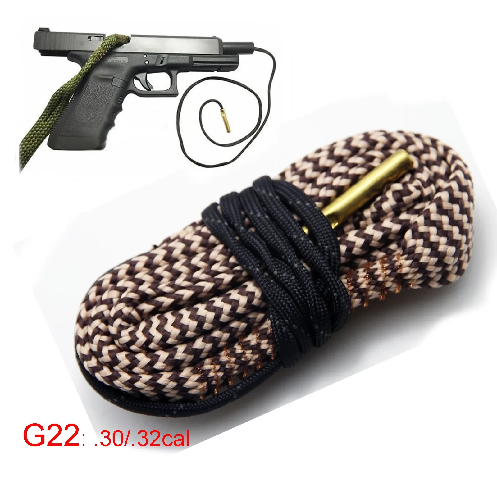Kit de limpieza de pistola de portero limpiador de serpiente de orificio.17.22.30 Calibradores Pistola de rifle El Boresnake elimina la molestia y el desorden de limpiar rifles, pistolas y escopetas.Fácil de usar, lavable y reutilizable, garantizará que todas sus armas de fuego favoritas se mantengan en excelentes condiciones.El cepillo con cerdas de bronce está incrustado en un cordón para aflojar los depósitos duros.Un tirón o dos del panqueque y obtendrás un orificio limpio y brillante que está listo para tener más acción.Es ideal para limpieza rápida o para limpieza en el campo.Sin varillas, sin parches y sin accesorios.