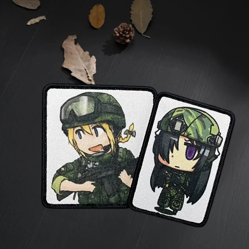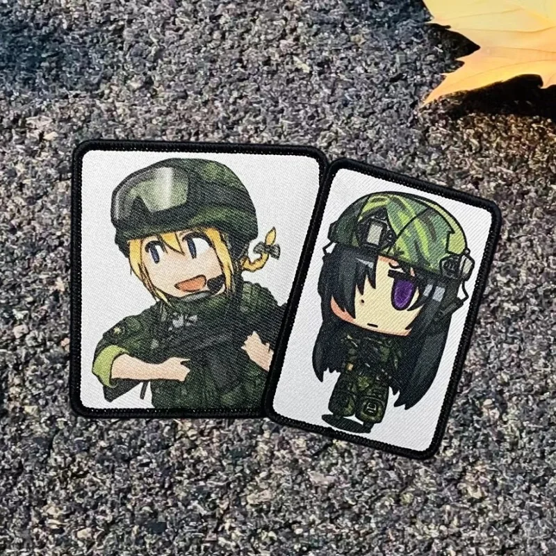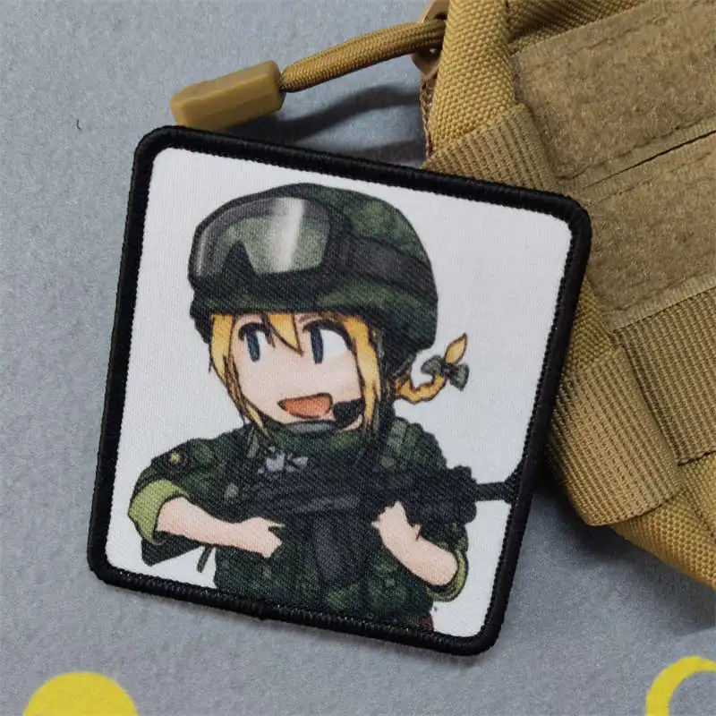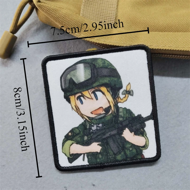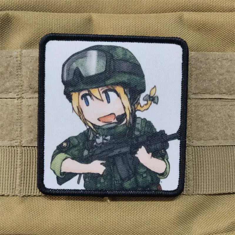 Linda chica de Anime con una pistola parche táctico moral brazalete insignia gancho y bucle parches militares mochila sombrero accesorios pegatinas