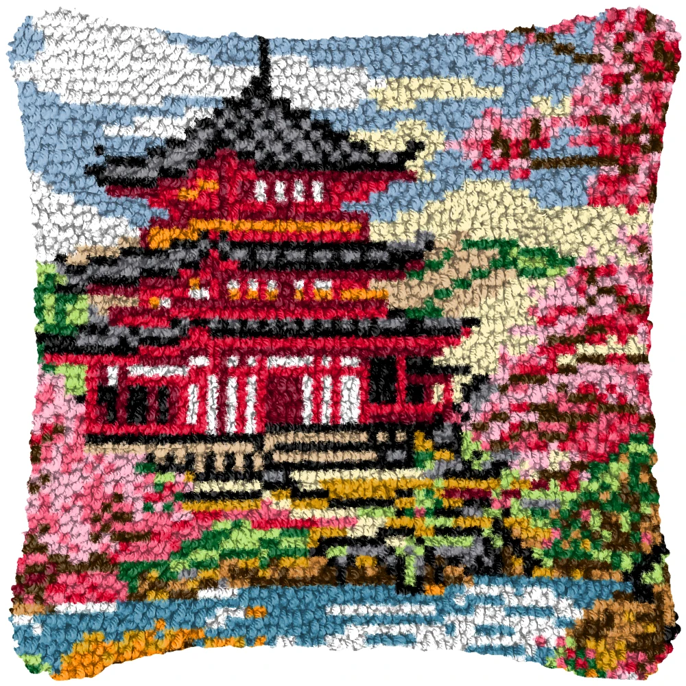 Cute Dog Pink Pillow Carpet Embroidery Pillow Case Pumpkin Latch Hooking Kits Moss Rug Buildings Joy Holiday Cross Stitch Kits
