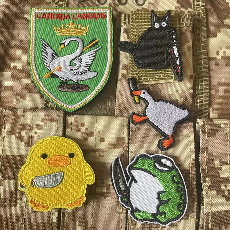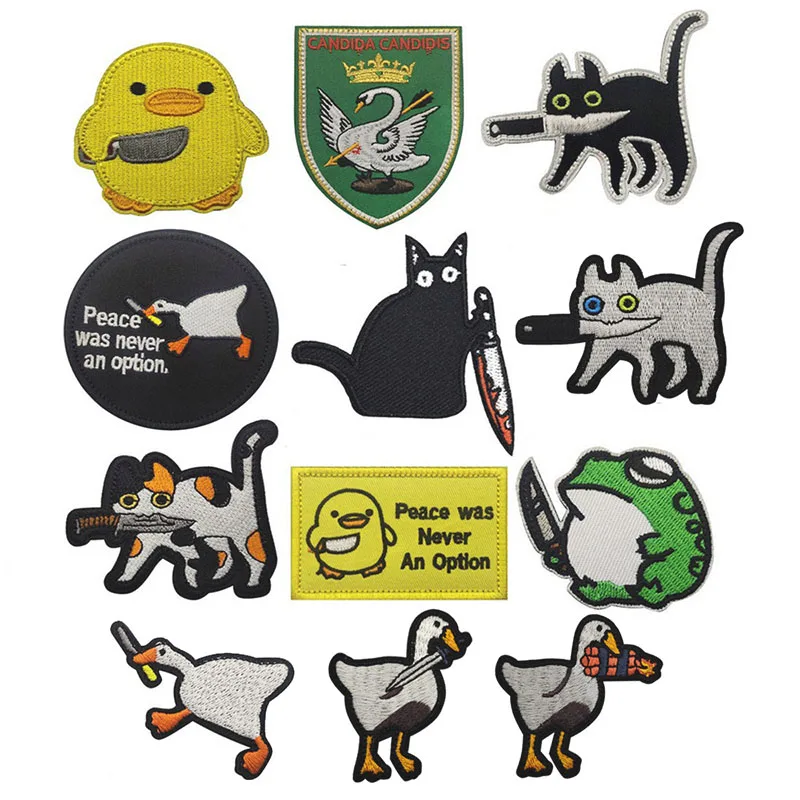 Bonitos animales de dibujos animados y cuchillo gato pato ganso táctico bordado insignia gancho y bucle parches insignia ropa raya parche