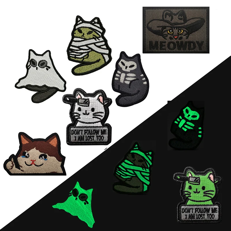 Bonitos animales de dibujos animados y cuchillo gato pato ganso táctico bordado insignia gancho y bucle parches insignia ropa raya parche