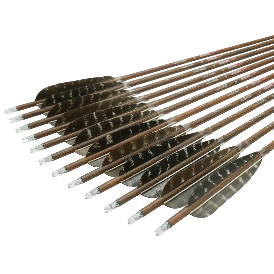 1) Rectitud: +/- .003"2)ID 6,2mmLongitud del eje de la flecha: 32 pulgadas (Corte libre)3)Fletching: paletas de pavo de 4"4)Nock: nocks de plástico5) Punta de flecha: grano 100 (si cambia 75gr deje un mensaje)6)Material: carbono puro 100%