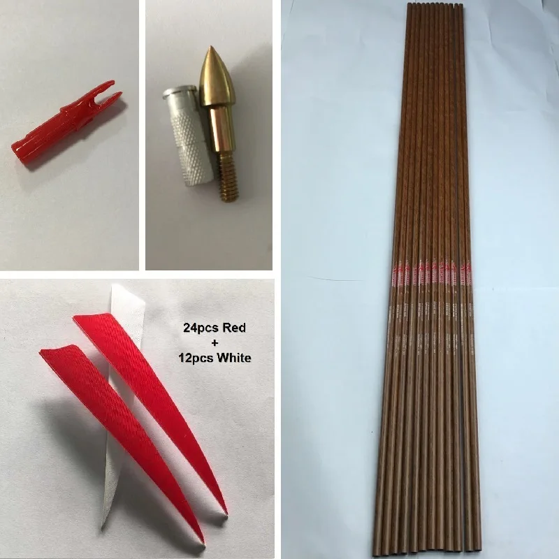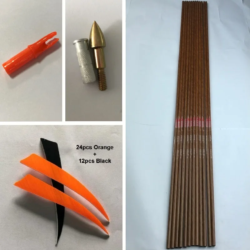 Linkboy-Flechas de carbono puro para tiro con arco, accesorios DIY para caza, 900, ID6.2MM, piel de madera