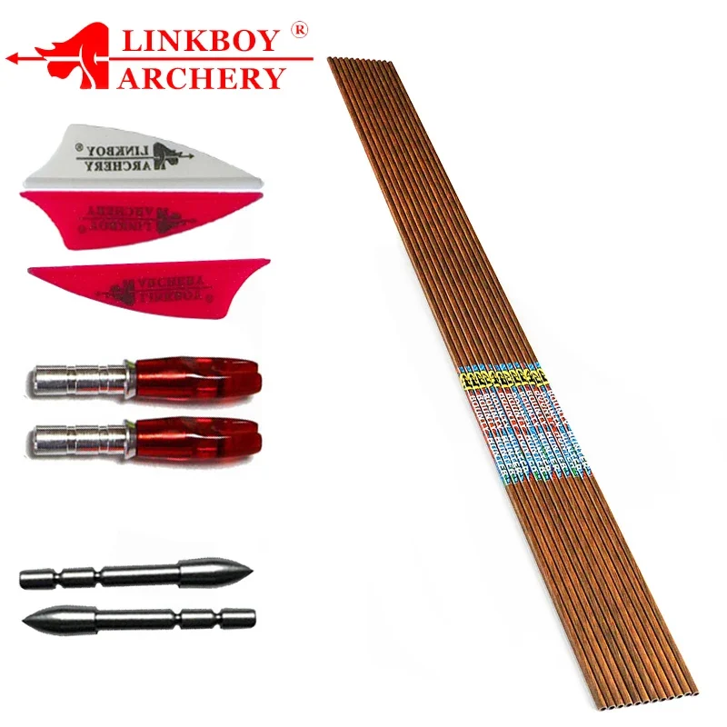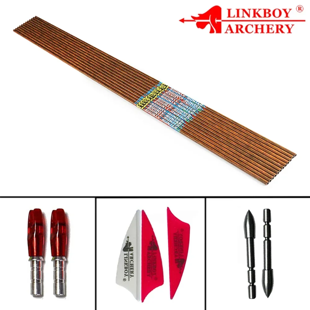 12 piezasLinkboy tiro con arco flechas de carbono Sp500 700 800 900 ID4.2MM piel de madera accesorios DIY arco recurvo flechas caza