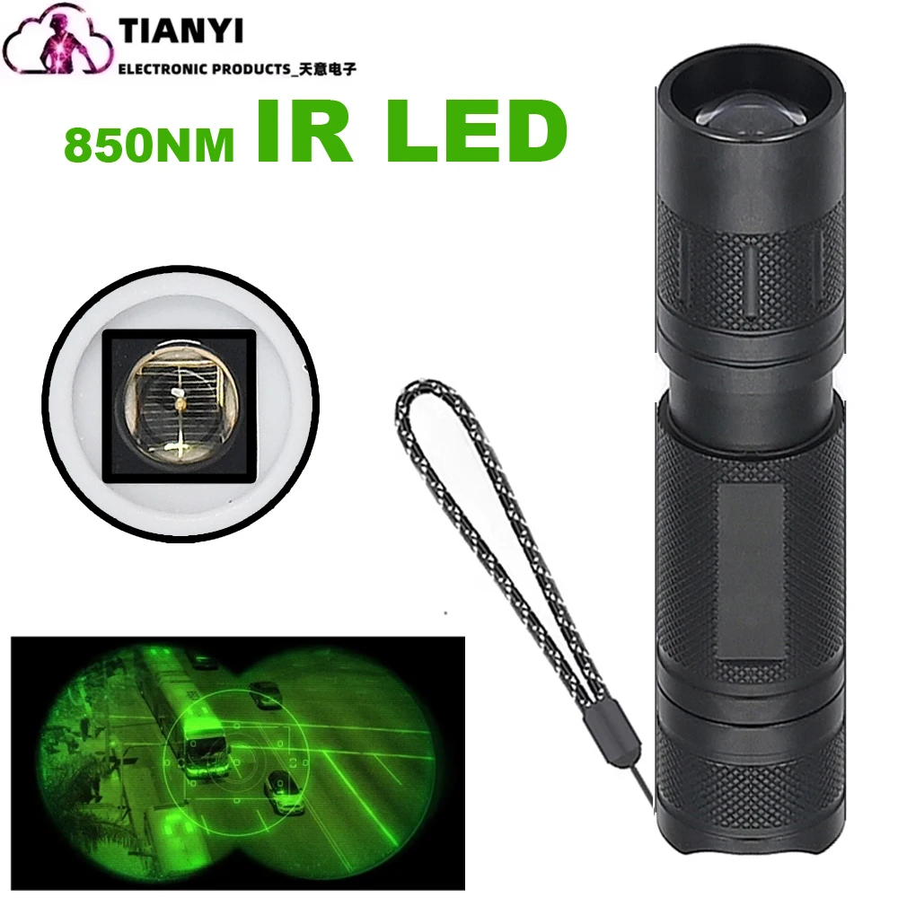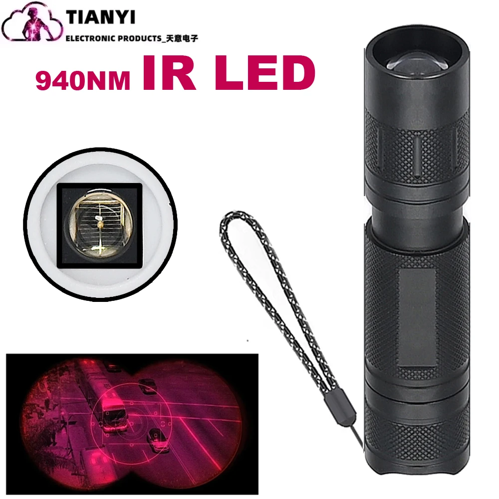 Enfoque con zoom IR850nm/IR940nm LED radiación infrarroja lámpara IR visión nocturna linterna: LUZ IR INVISIBLE: Emite luz infrarroja con longitud de onda de 940 nm/850 nm, adecuada para usar con un alcance de visión nocturna, NVS, NVG DIY, cámaras de teléfonos, monoculares, gafas y cámara que no bloquea la luz roja infrarroja.