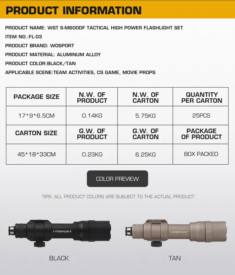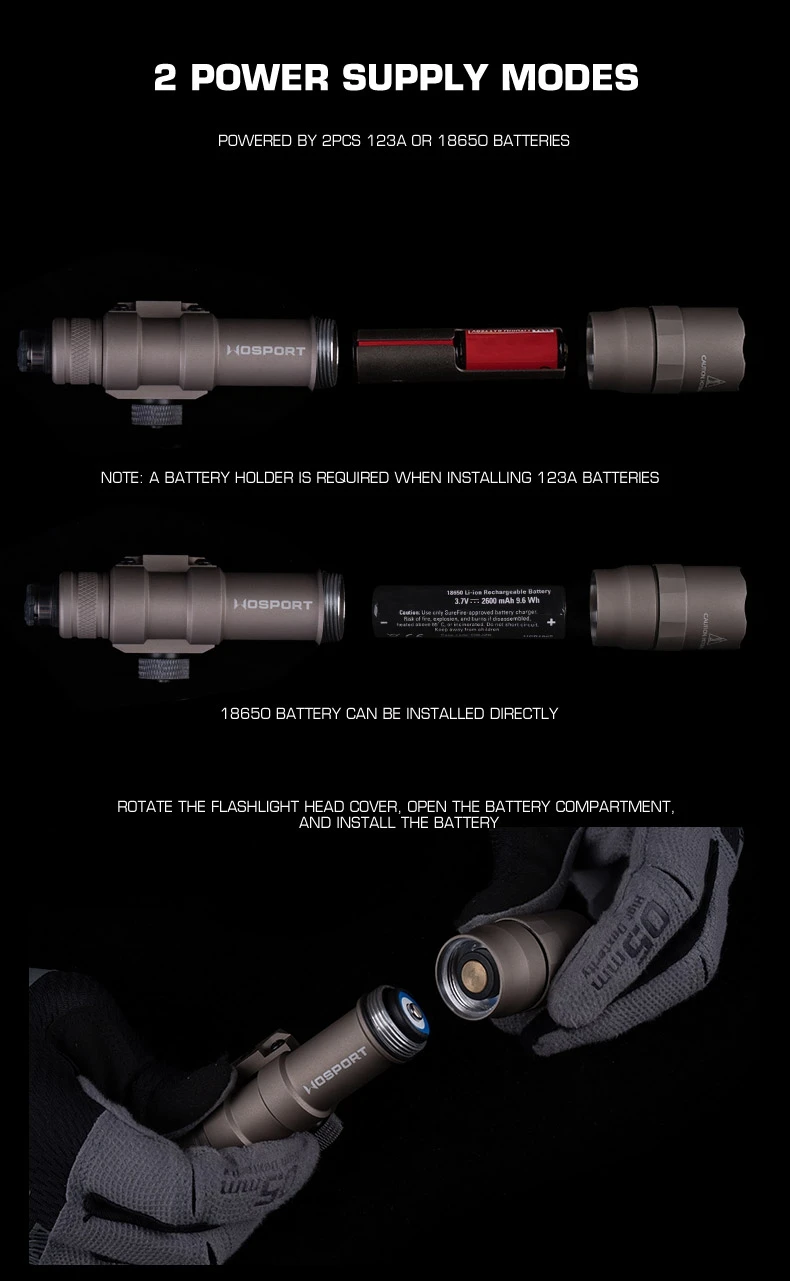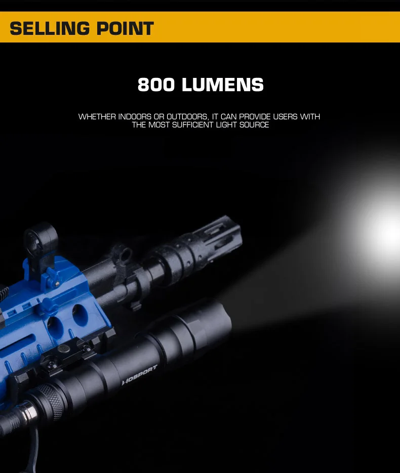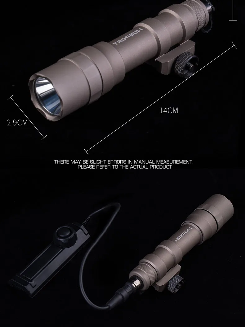 Linterna de alta potencia S-M600DF con interruptor de cable de cola de rata, carril Picatinny adaptado, luz de 800 lúmenes para caza y tiro