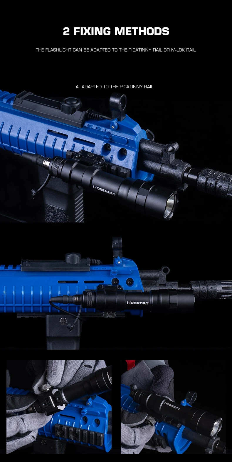 La linterna se puede adaptar al riel Picatinny.