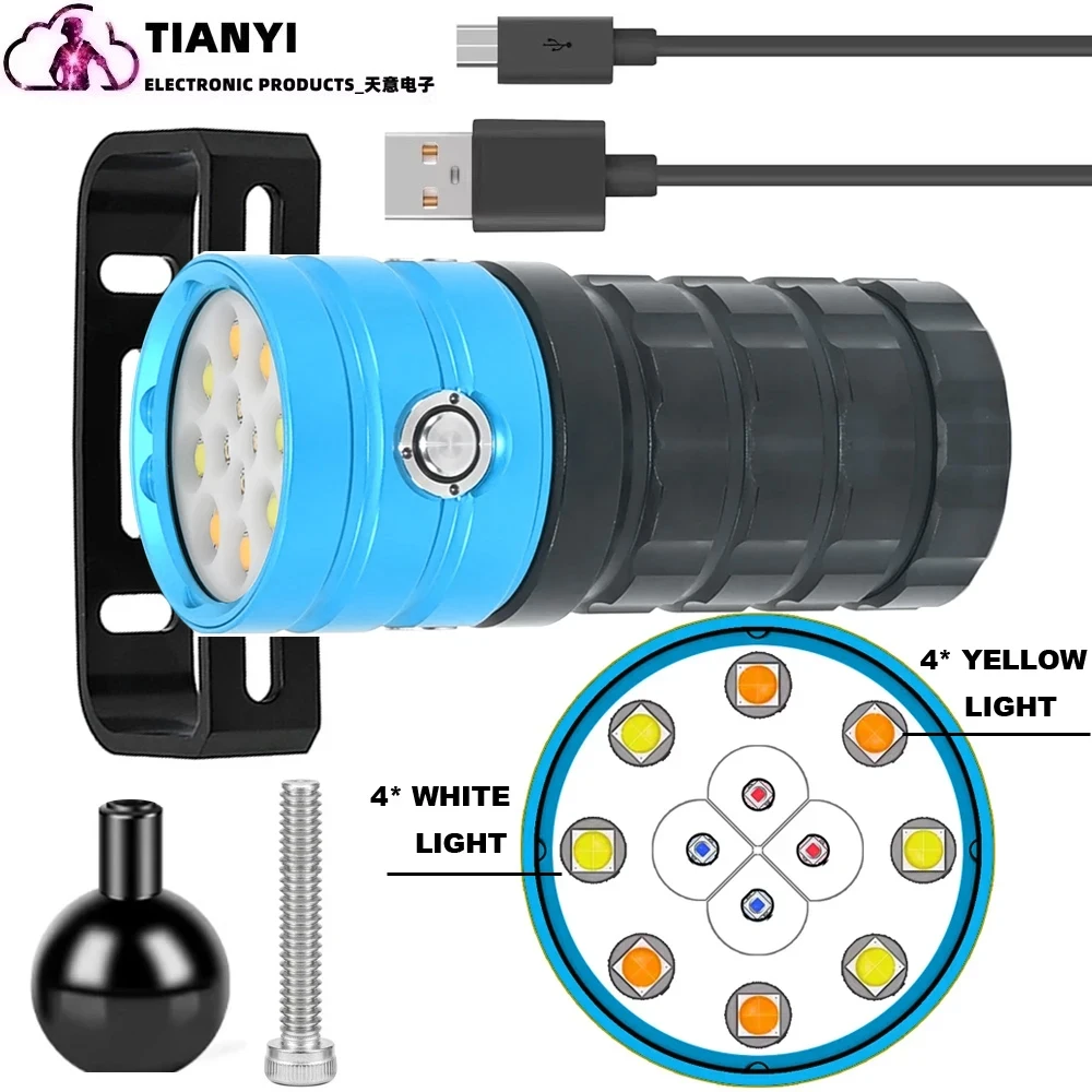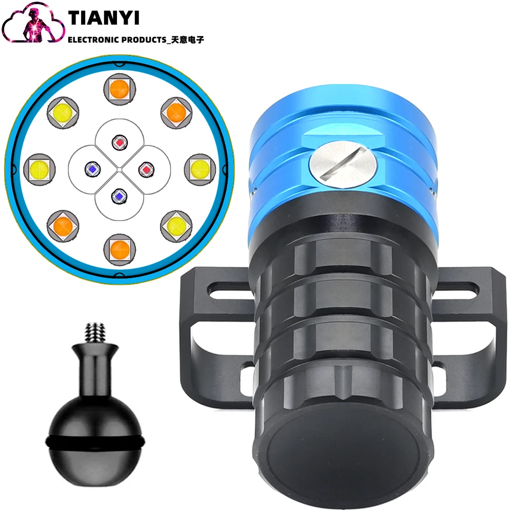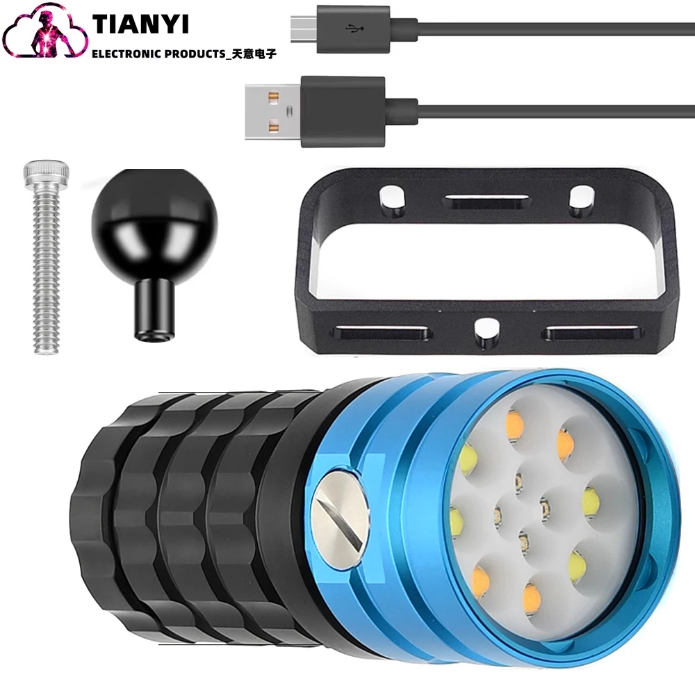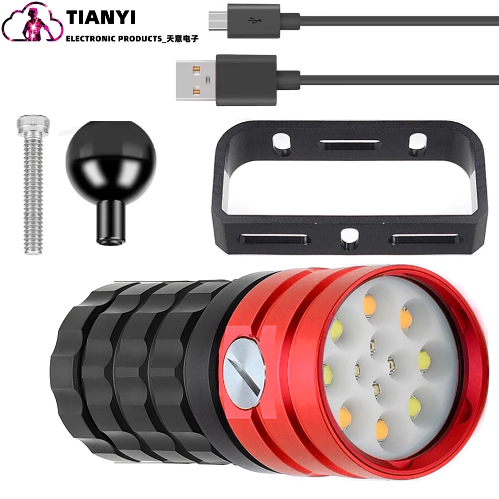 Linterna de buceo 25000 lúmenes linterna subacuática 100m luz de buceo luz de vídeo subacuática antorcha impermeable