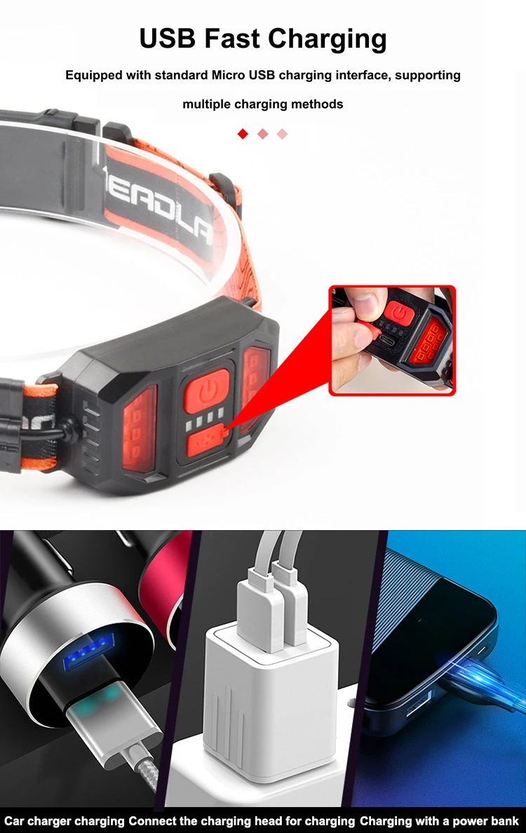 Linterna frontal LED con luz trasera, faros recargables para casco de seguridad, linterna de haz ancho, accesorios para casco