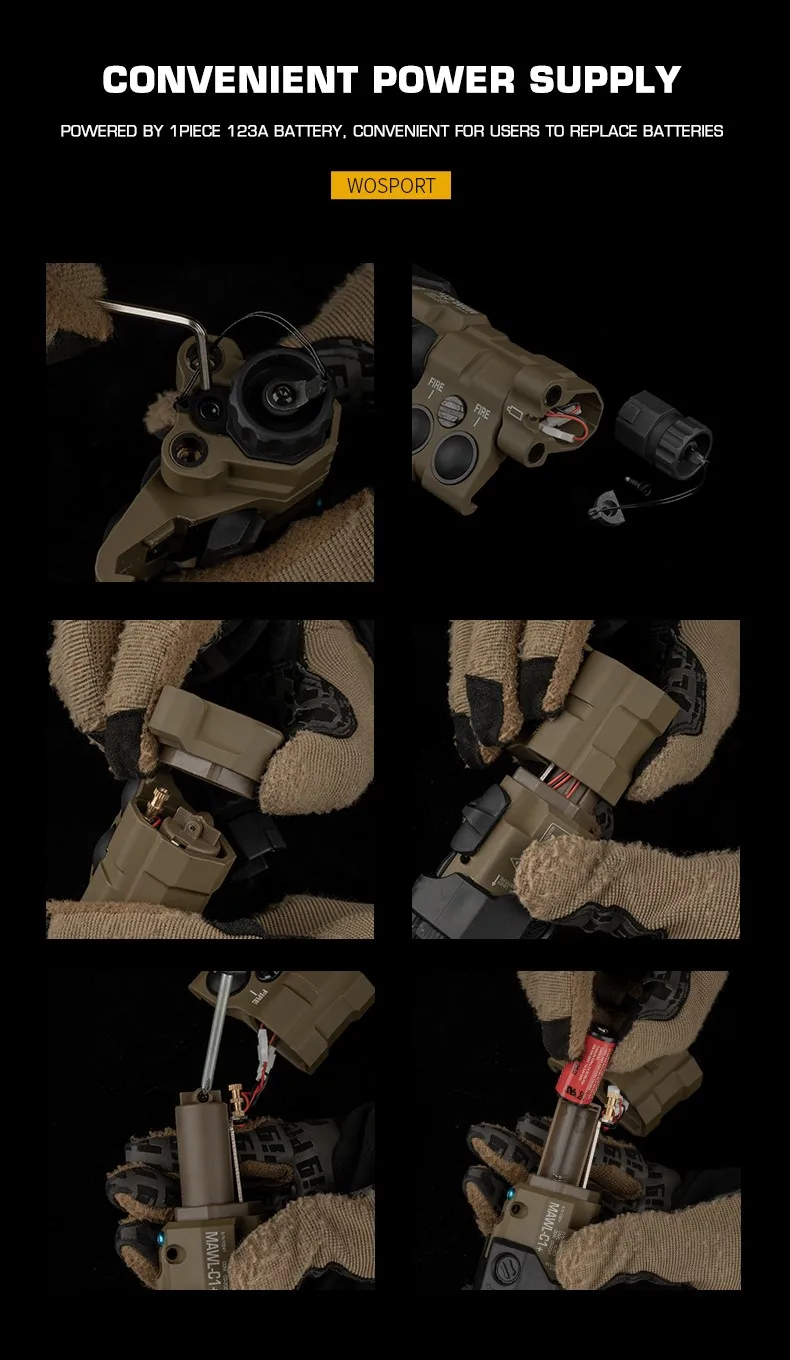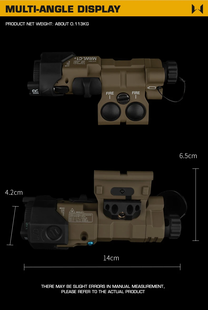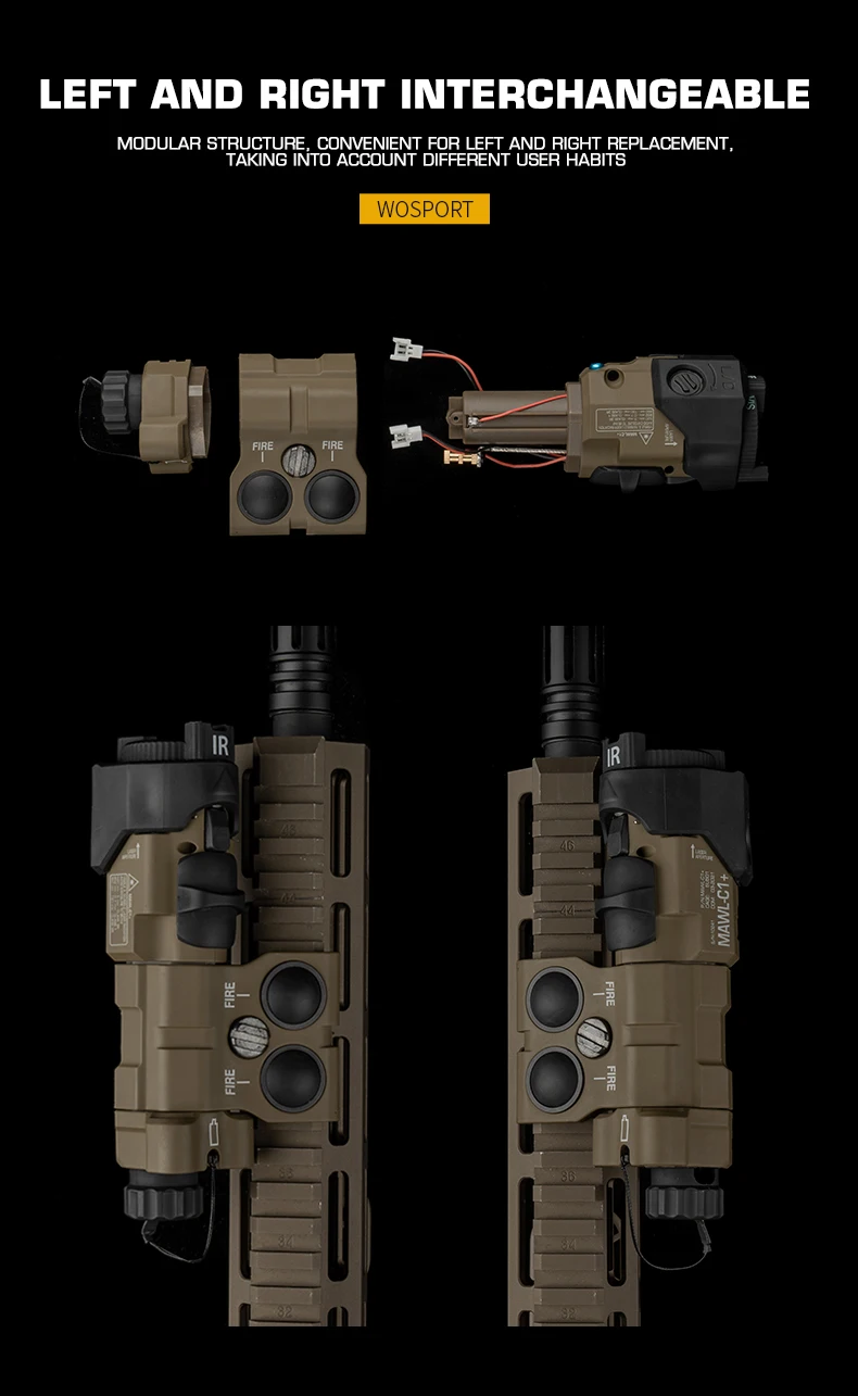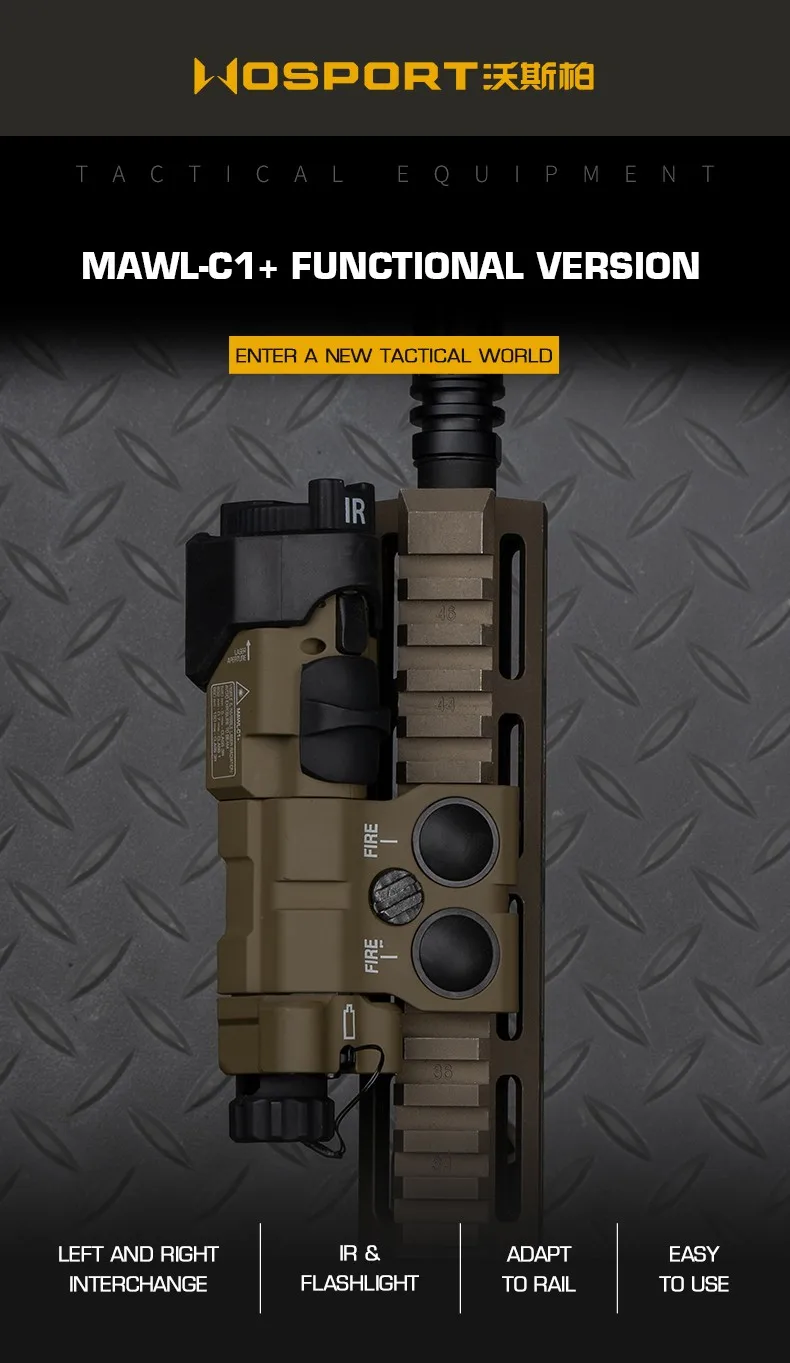 Linterna funcional táctica MAWL-C1 para exteriores, láser verde/láser rojo, montaje en riel, intercambio lateral a lateral