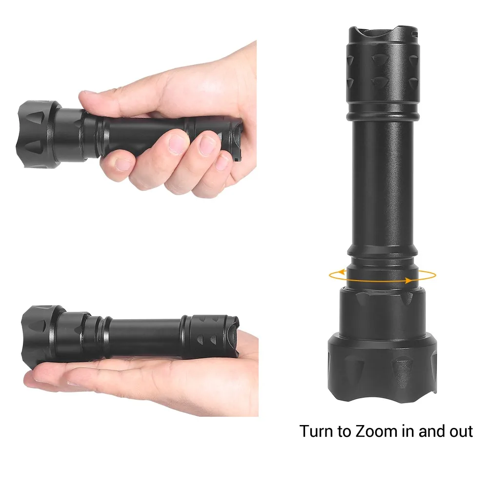 La función de enfoque giratorio de la lente permite enfocar hacia adentro para un foco estrecho o hacia atrás para un efecto de inundación, especialmente diseñado para iluminaciones de largo alcance.Puede iluminar mucho más lejos con un haz enfocado, en comparación con el iluminador sin funciones de enfoque.