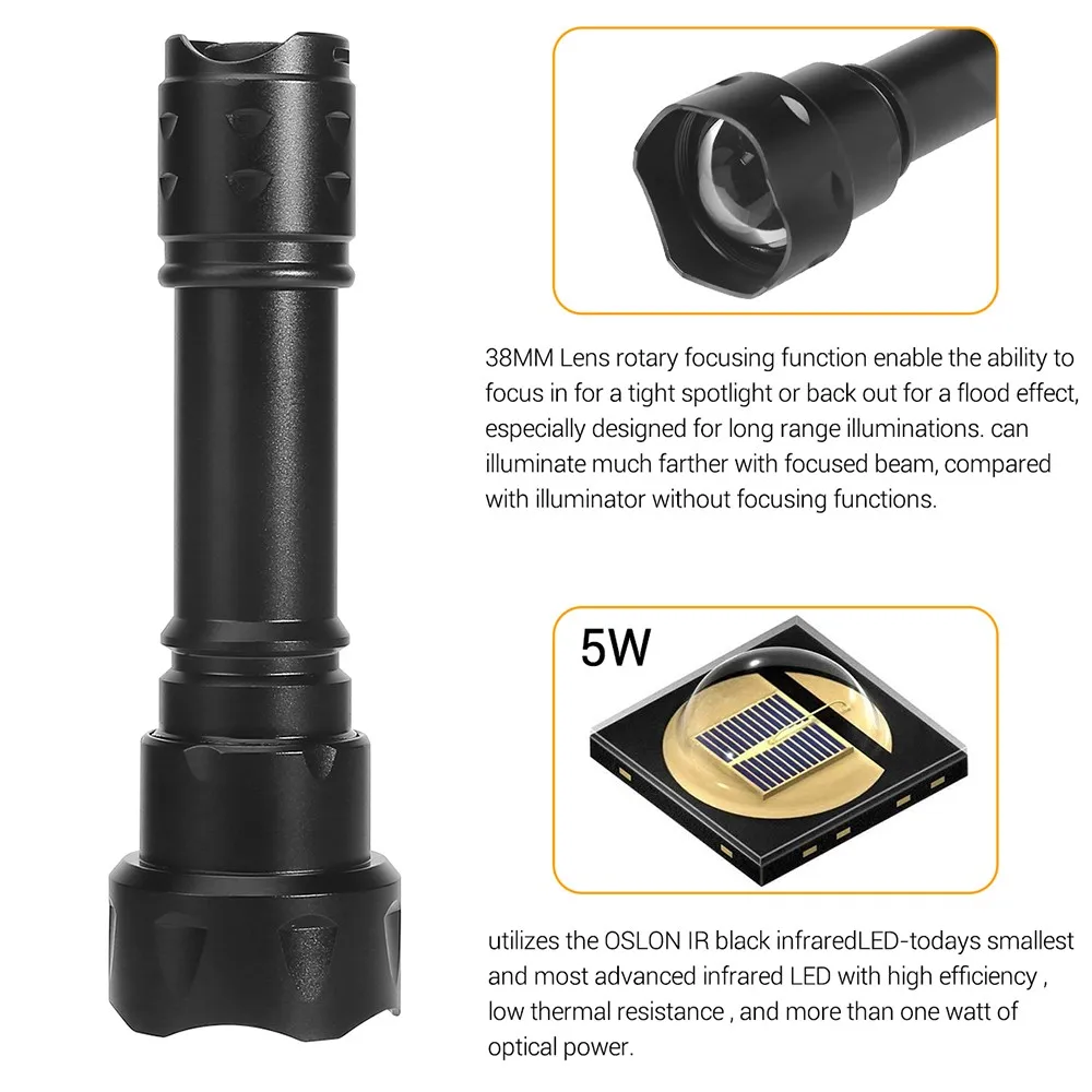 Linterna infrarroja táctica de 850nm y 940nm, pistola de arma con zoom, luz, iluminador IR, linterna con Chip VCSEL para dispositivo de visión nocturna