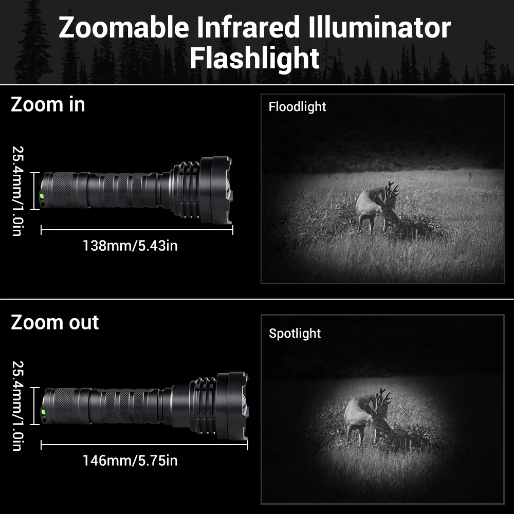 Linterna infrarroja VCSEL de 850nm/940nm, iluminador IR con zoom, emisor de diodo ajustable, luz de caza para escopo de visión nocturna