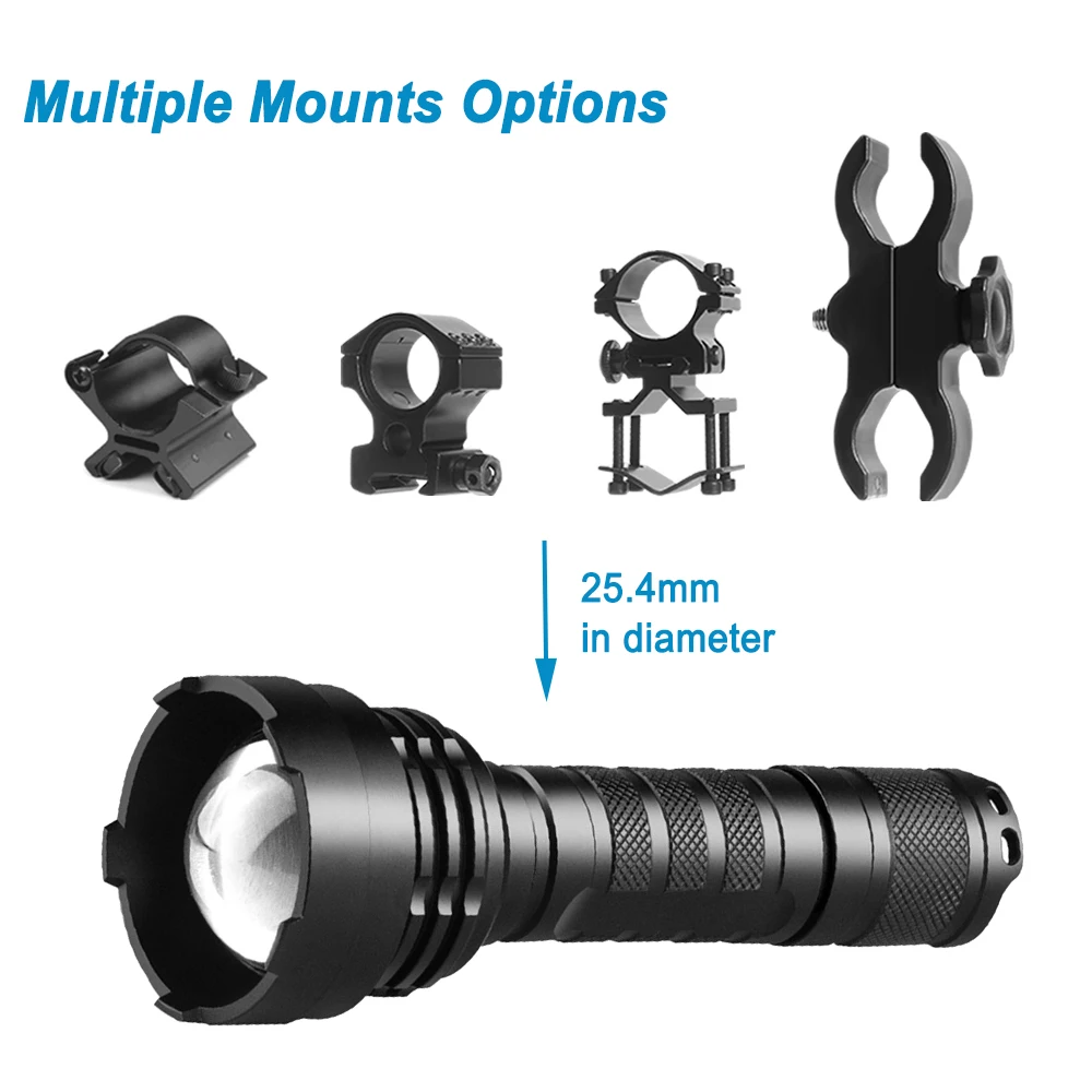 La función de enfoque giratorio de la lente permite enfocar hacia adentro para un foco estrecho o hacia atrás para un efecto de inundación, especialmente diseñado para iluminaciones de largo alcance.Puede iluminar mucho más lejos con un haz enfocado, en comparación con el iluminador sin función de enfoque.s.