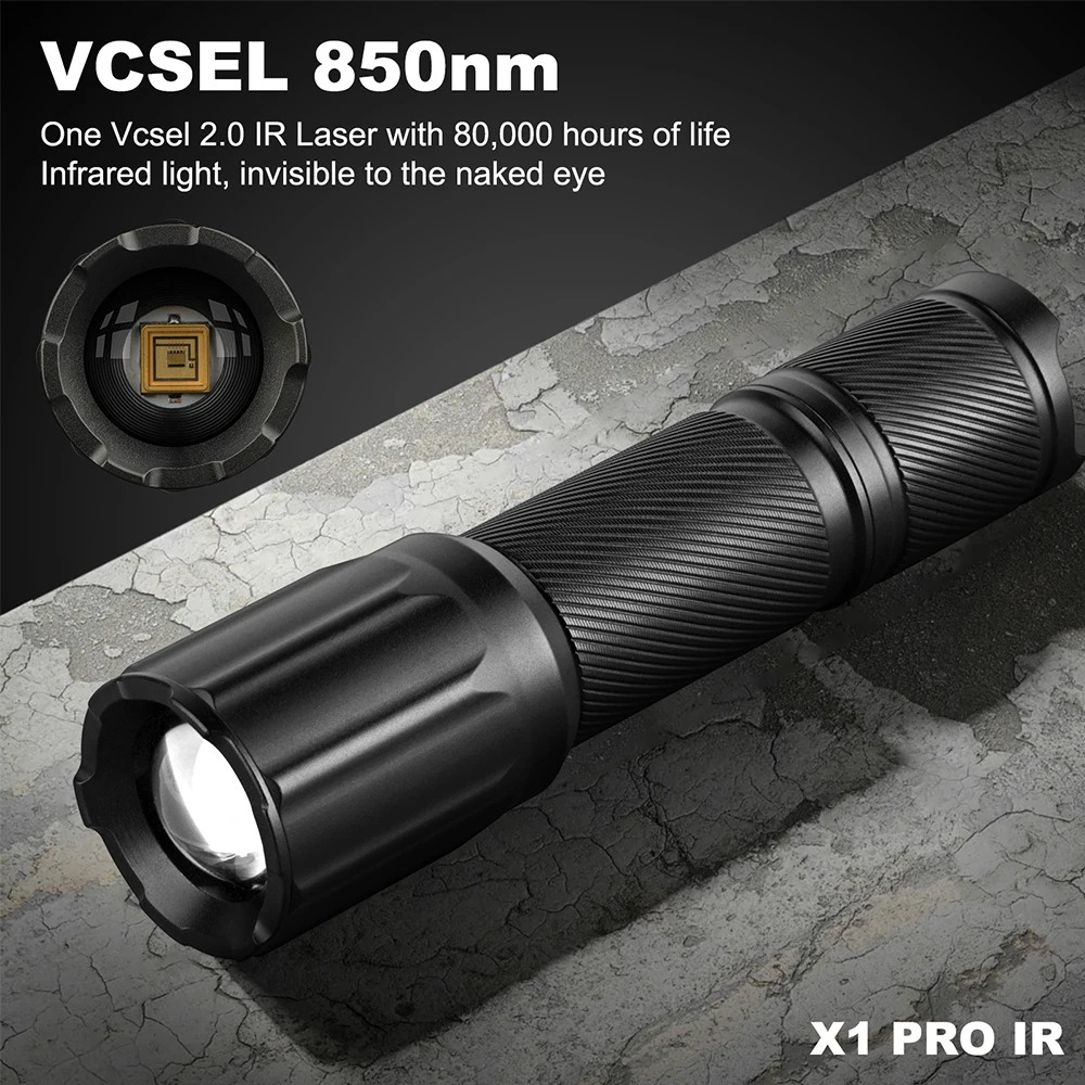 - Zoom Hunting Infrared Flashlight has advanced upgraded infrared LED, helps to have better night vision in camping, night fishing, night flying, sailing, caving and hunting.