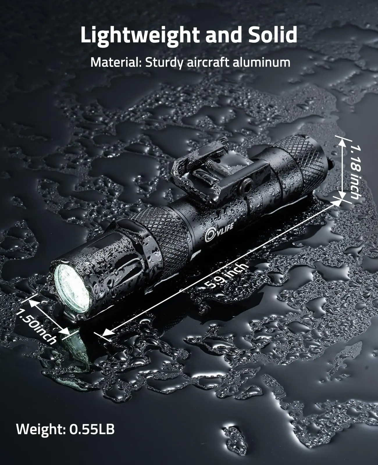【Construcción robusta】Esta linterna Picatinny está hecha con aluminio resistente de grado aeronáutico y recubrimiento de anodizado duro tipo III, y pasó la prueba de caída de 1,5 m, que es más sólida que las luces de pistola de plástico.